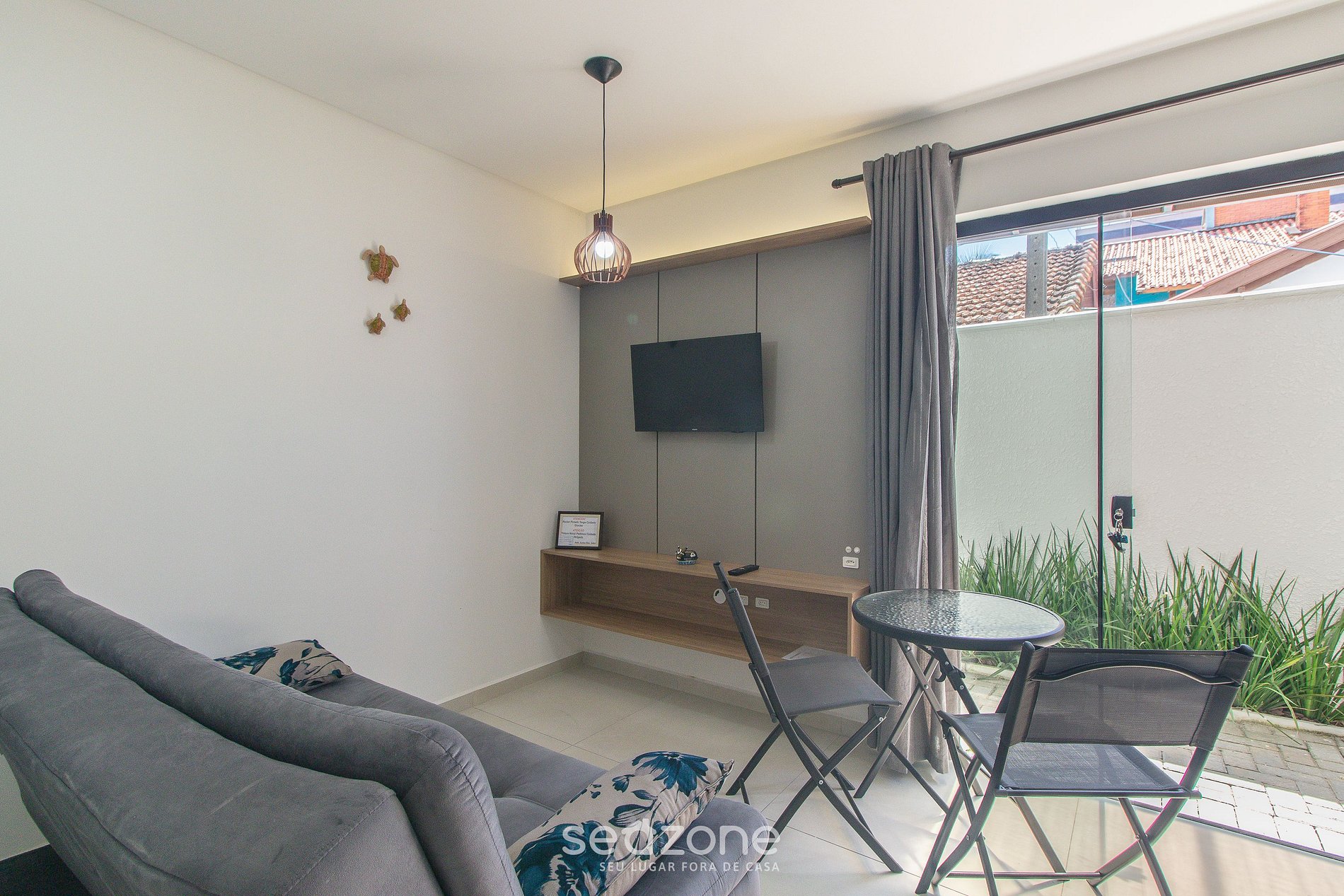 - Sala de estar com Sofá-cama de solteiro e Smart TV;