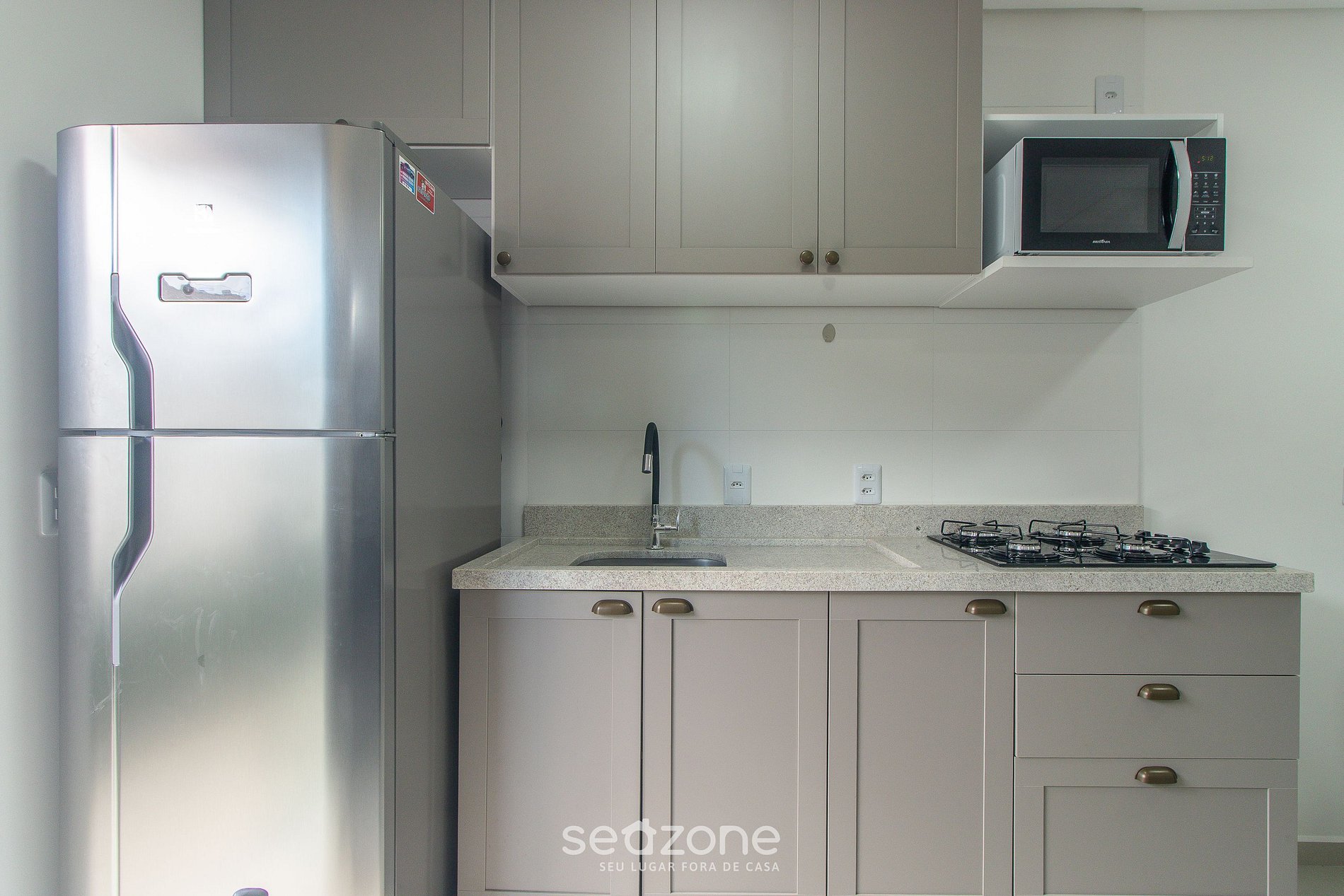 - Cozinha completa com geladeira, fogão cooktop a gás, micro-ondas, airfryer, sanduicheira, cafeteira elétrica, liquidificador, panelas, louças e utensílios;