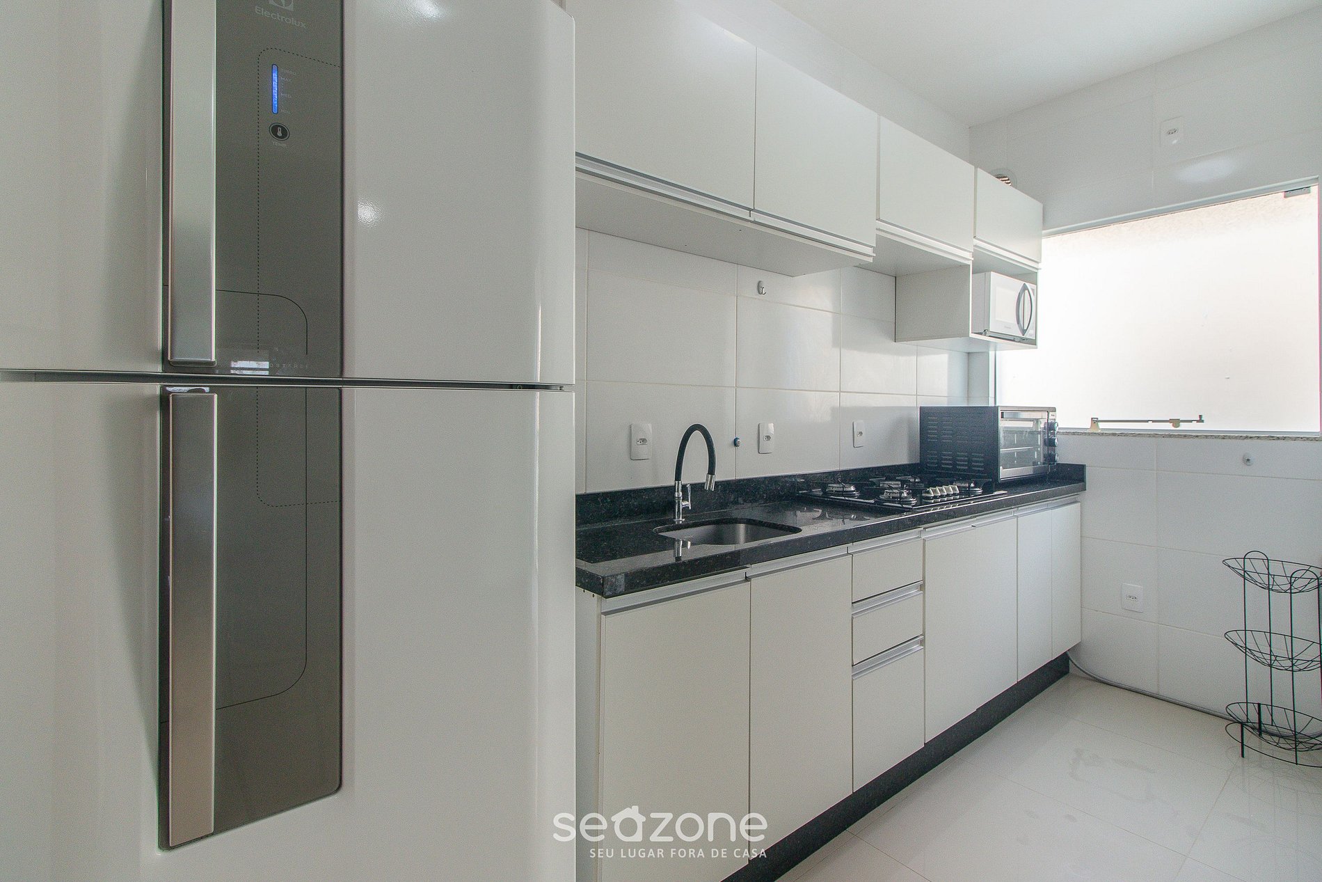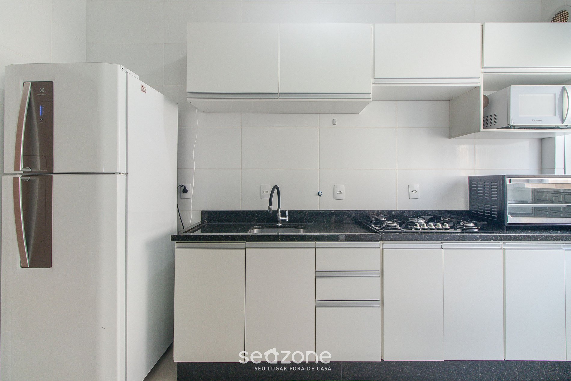 - Cozinha completa com geladeira, fogão cooktop (gás), forno elétrico, micro-ondas, sanduicheira, Kit café (suporte para filtro, garrafa térmica), chaleira elétrica, liquidificador, taças de vinho, panelas, louças e utensílios;