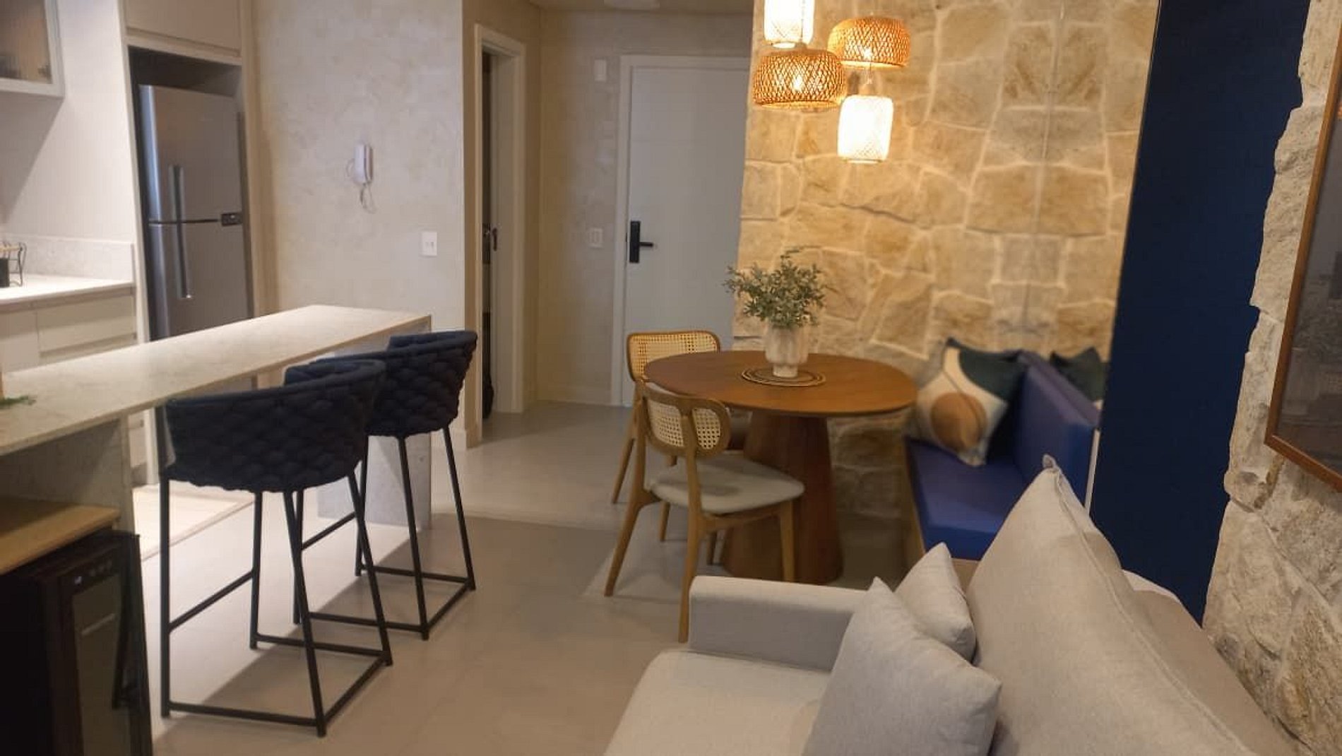 - Espaço para jantar com mesa e cadeiras;