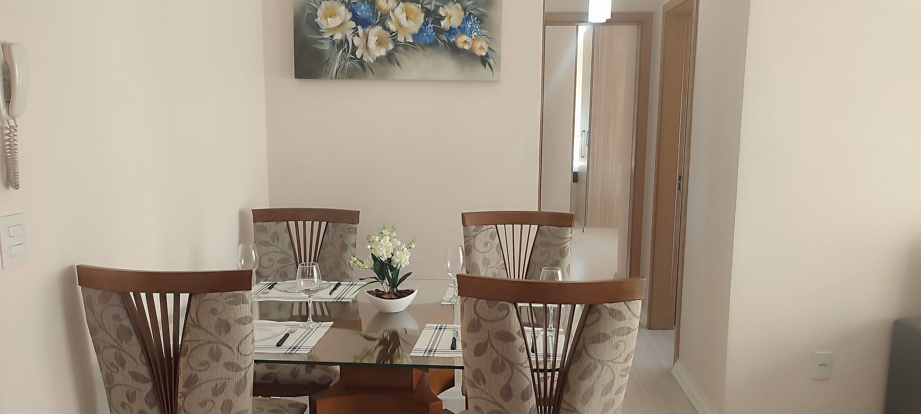 - Espaço para jantar com mesa e 4 cadeiras;