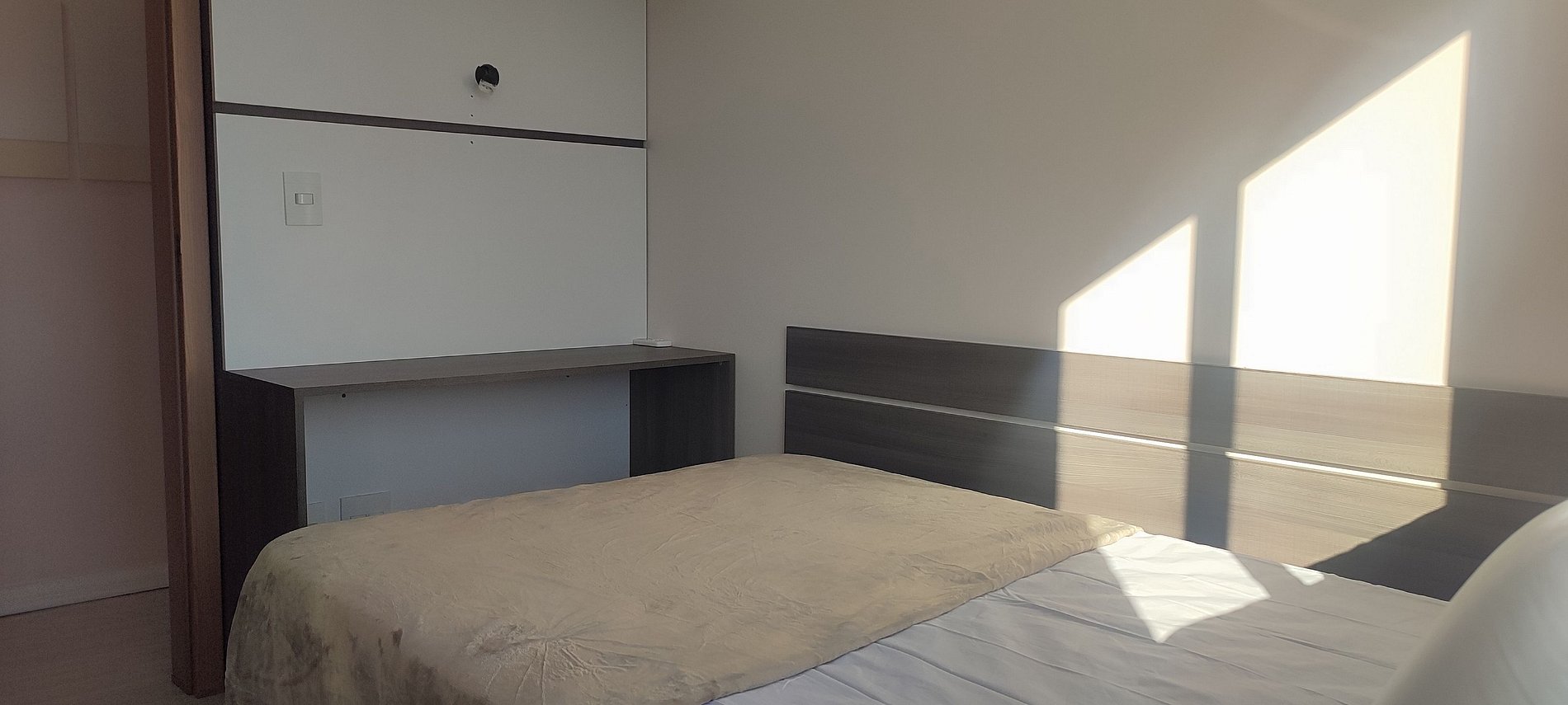 - 1 Quarto com cama meio casal, armário e ar-condicionado;
