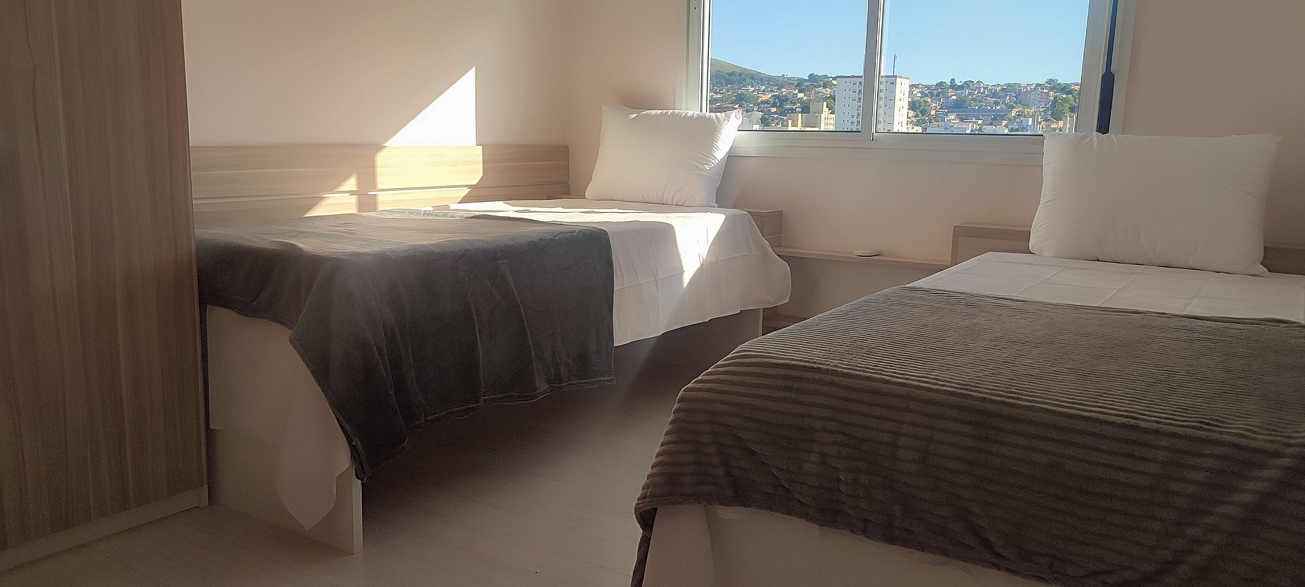 - 1 Suíte com 2 camas de solteiro, armário e ar-condicionado;