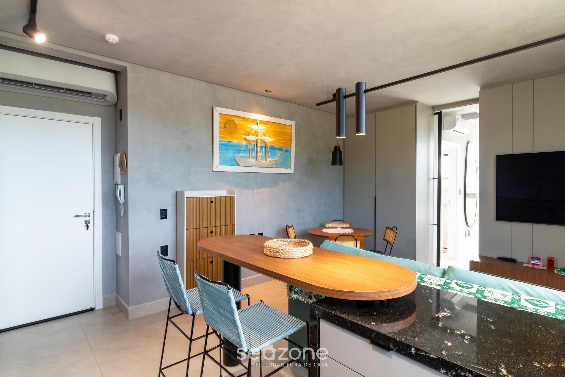 Design funcional, ambientes climatizados e uma localização estratégica definem este apto em Bombinhas. A acomodação oferece suíte confortável, sala integrada, cozinha completa, lavanderia no imóvel e churrasqueira privativa. O condomínio complementa a estadia com piscina, jacuzzi, academia e espaço kids. A poucos minutos da praia e próximo a mercados, restaurantes e serviços essenciais.