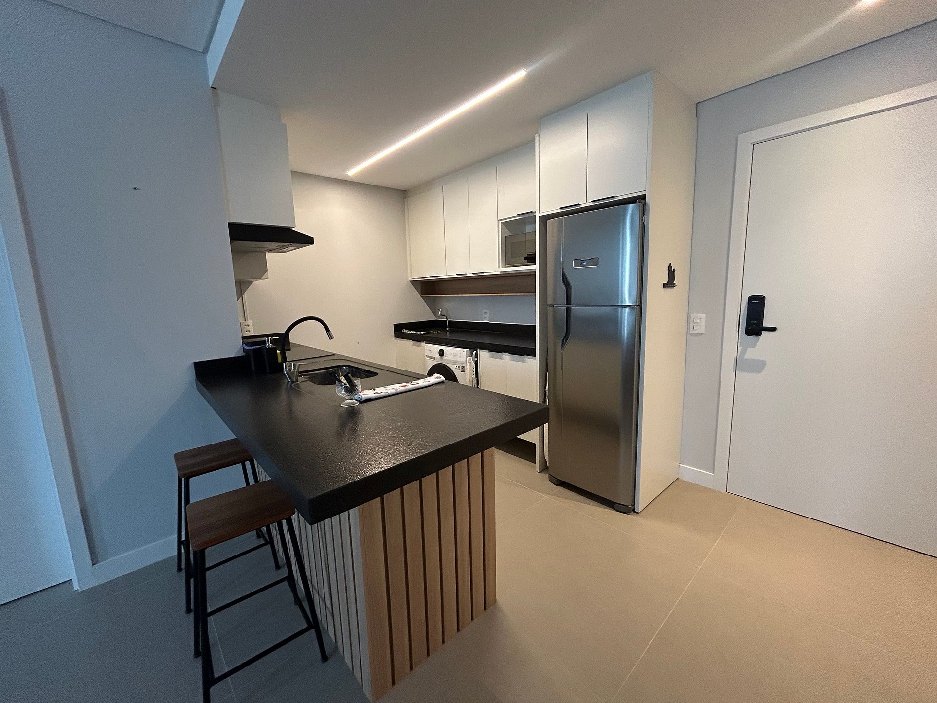 - Cozinha completa com geladeira, fogão cooktop por indução, forno elétrico, microondas, sanduicheira, cafeteira elétrica, chaleira elétrica, liquidificador, panelas, louças e utensílios;