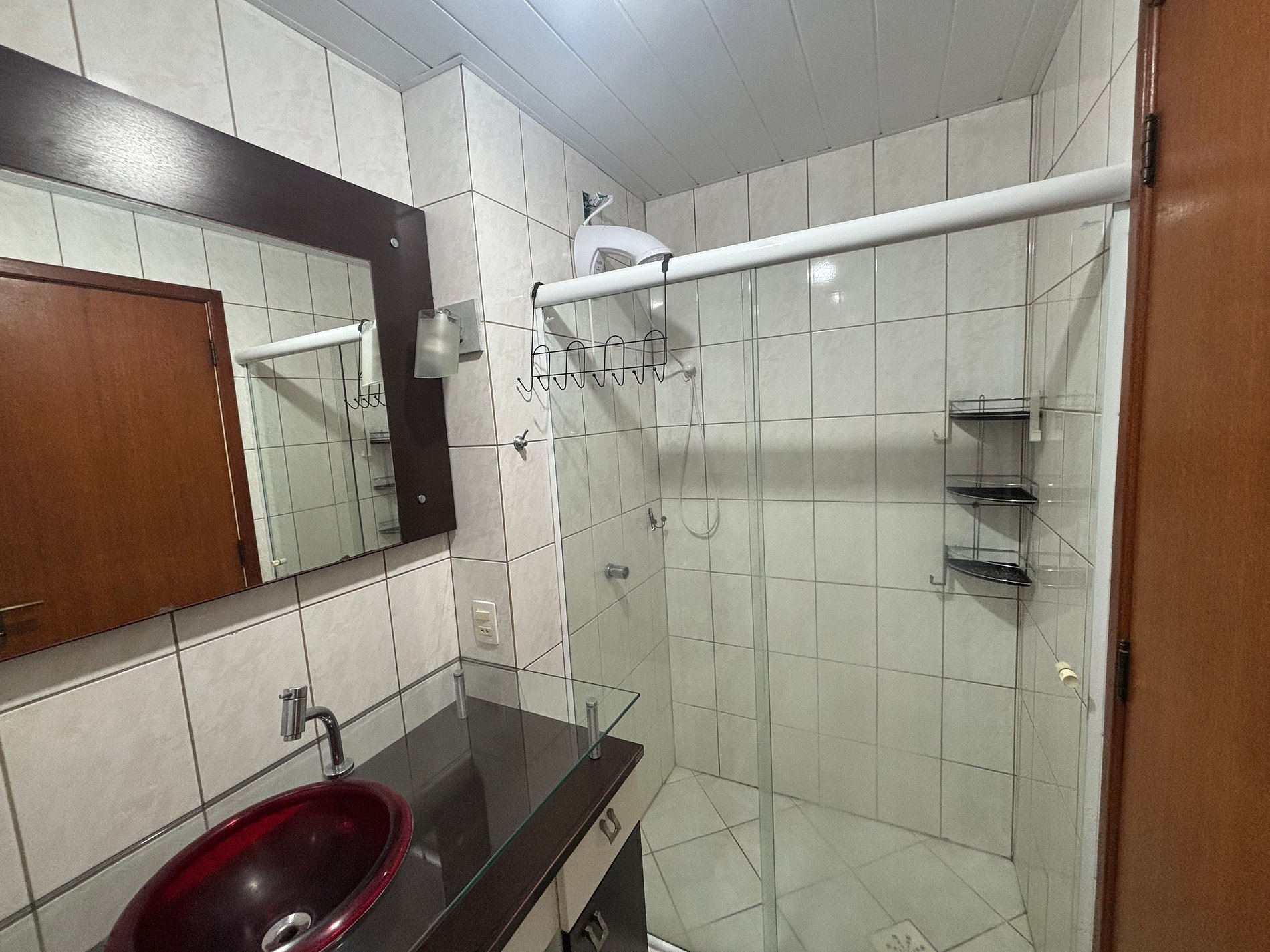- 1 Quarto com cama de casal, armário e ar-condicionado;