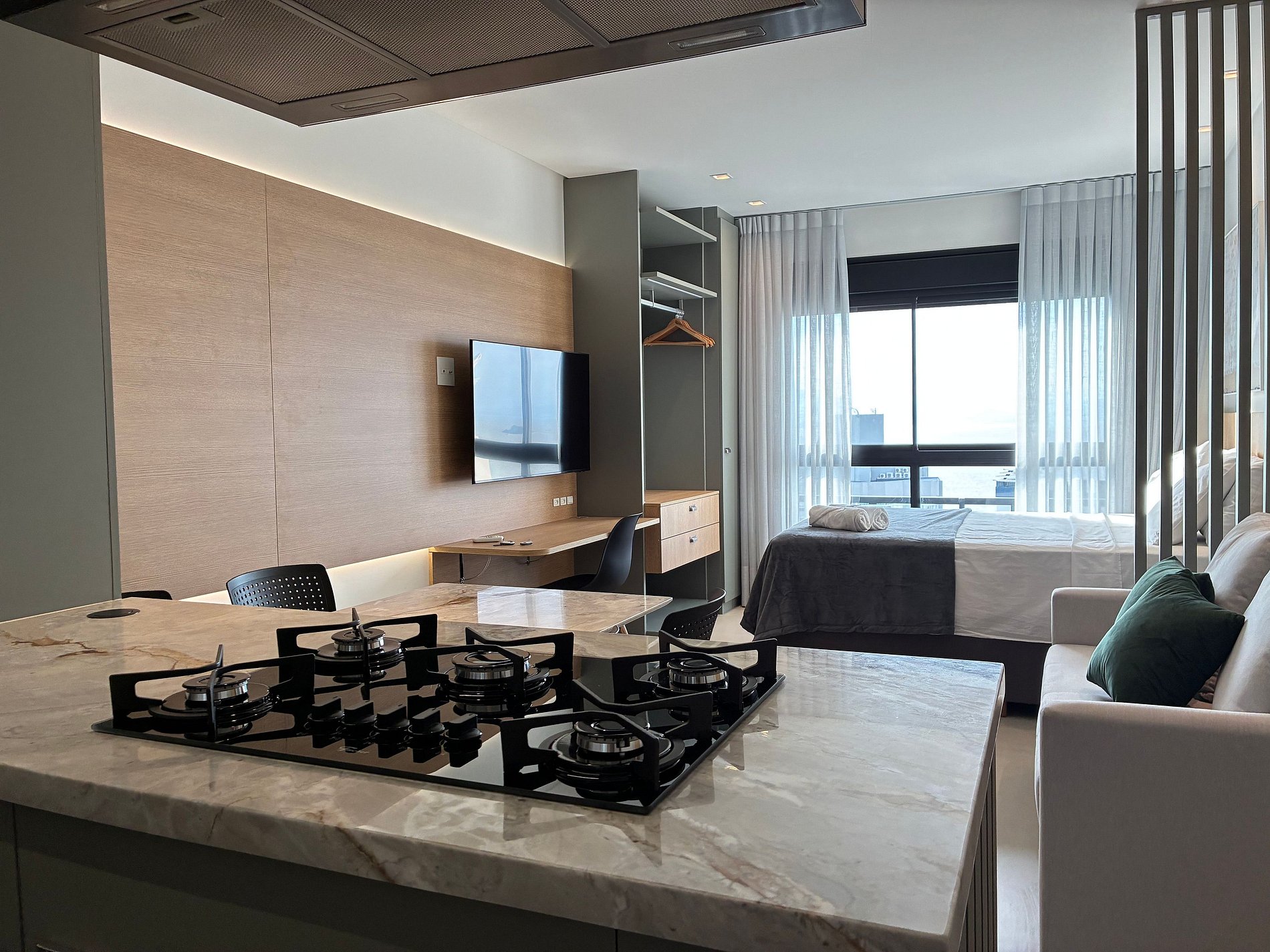 Desperte com uma vista deslumbrante para o mar em um estúdio de alto padrão! Este imóvel oferece o equilíbrio perfeito entre sofisticação e conforto, com uma cama queen luxuosa e ambiente totalmente climatizado. Aproveite a cozinha completa para maior autonomia e relaxe na piscina ou na jacuzzi do condomínio após um dia de praia. Viva a experiência de um refúgio exclusivo com o oceano aos seus pés. Reserve agora e garanta sua estadia premium na Ilha da Magia!