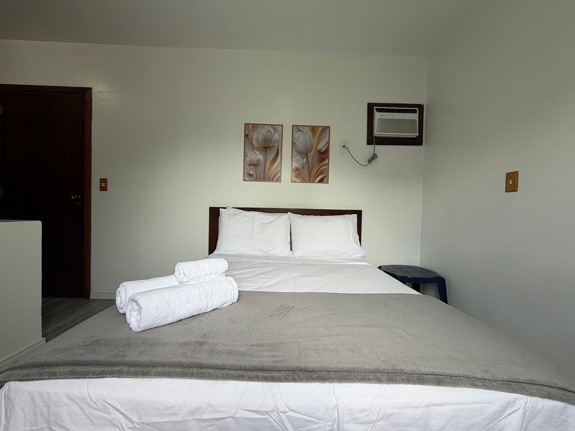 - 1 Quarto com cama de casal, armário e ar-condicionado;