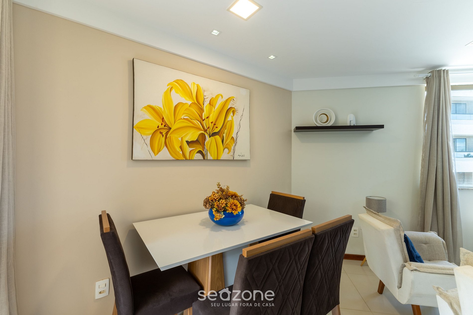 Com localização privilegiada a apenas 90m da praia, este apto entrega conforto, elegância e praticidade. São dois quartos climatizados, sendo uma suíte com varanda, além de sala aconchegante com Smart TV, cozinha completa, espaço para refeições e varanda com vista para o mar. Wi-Fi, máquina de lavar e garagem coberta complementam a estadia.