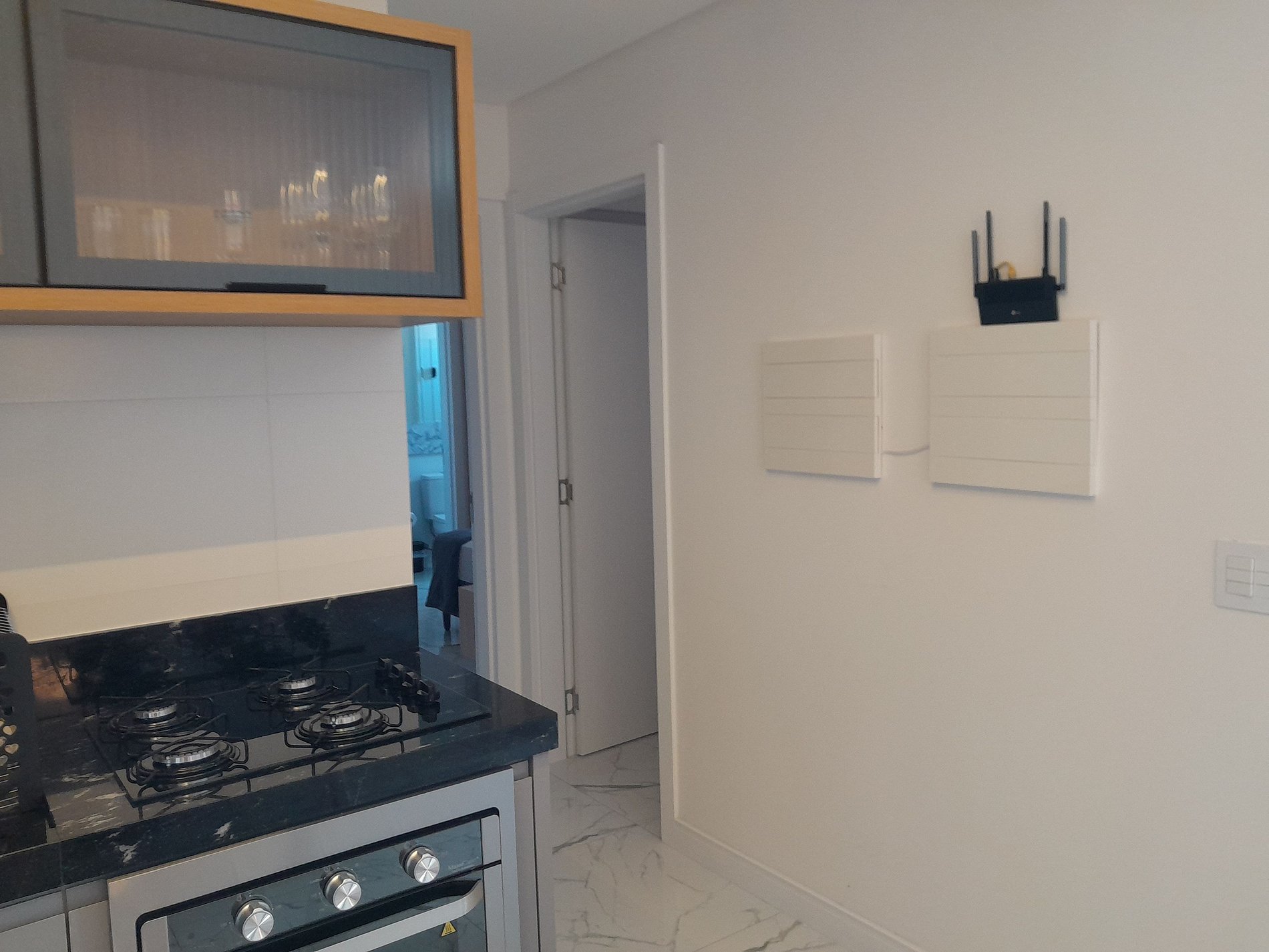 - Cozinha completa com geladeira, fogão cooktop (gás), forno elétrico, micro-ondas, sanduicheira, cafeteira, chaleira, liquidificador, taças de vinho, panelas, louças e utensílios;