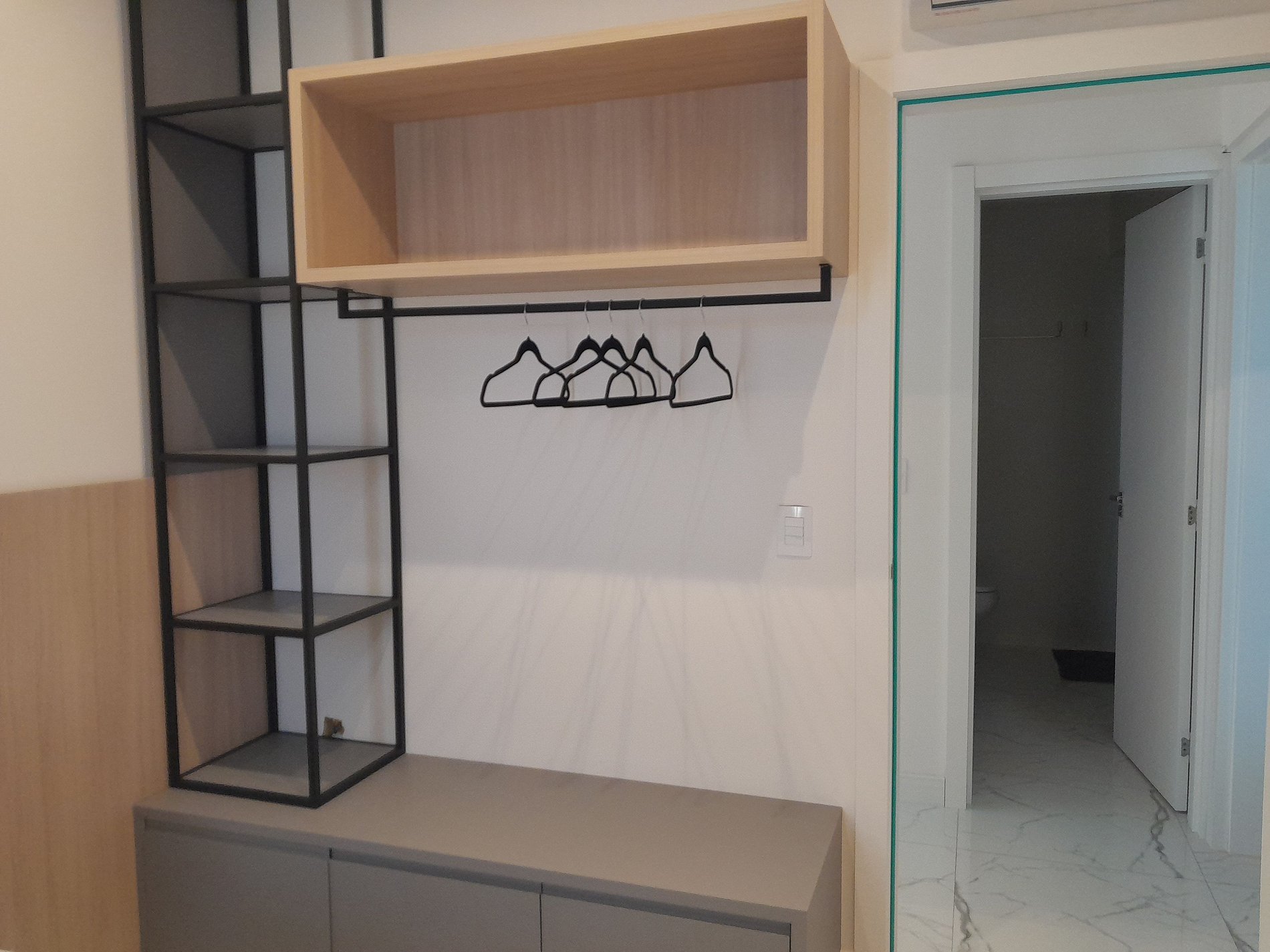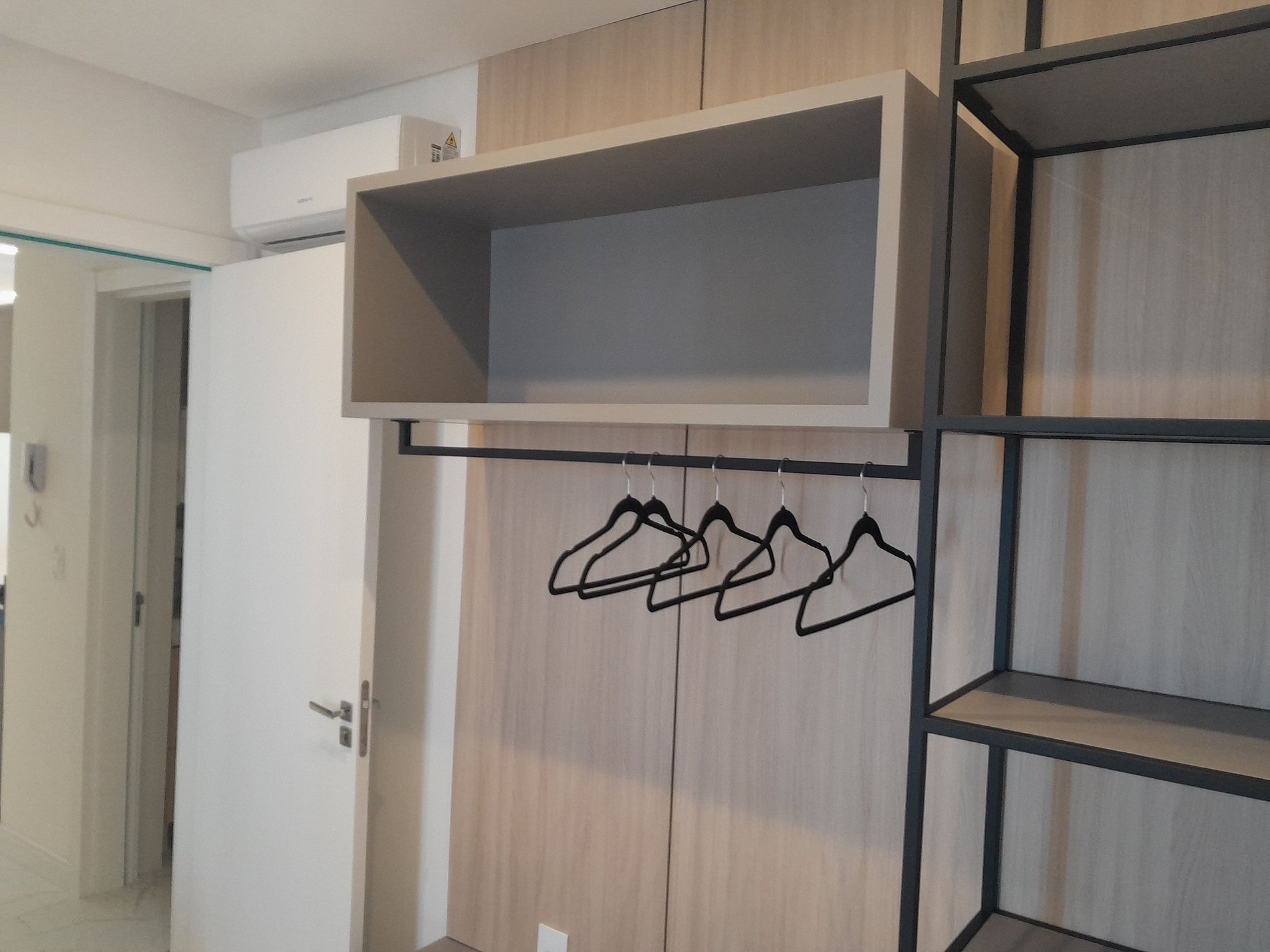 - 1 Suíte com cama casal, arara para roupas, smart TV e ar-condicionado;