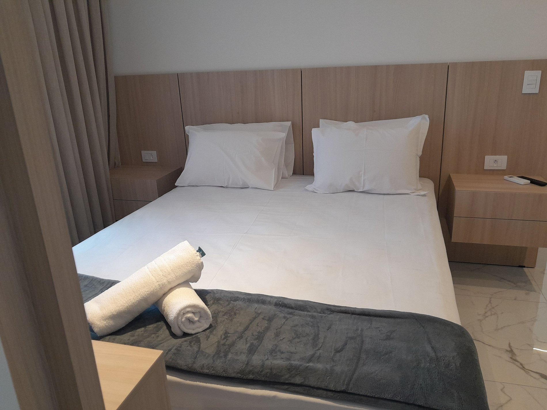 - 1 Quarto com cama casal, arara para roupas, smart TV e ar-condicionado;
