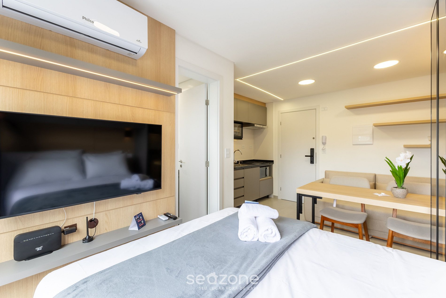 - Roupas de cama e banho de qualidade hoteleira (roupas de cama e toalhas extras são cobrados pela Seazone);
