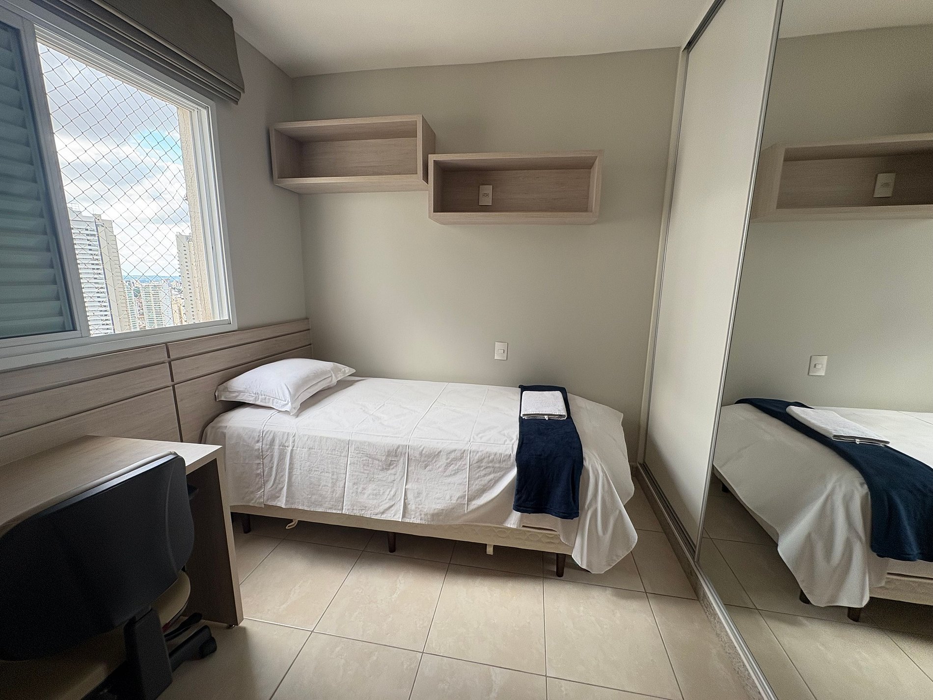 Desfrute do melhor do Jardim Goiás neste apartamento de 3 suítes! A localização é estratégica, a apenas 350m do Parque Flamboyant, 550m do Shopping Flamboyant e permite acesso rápido ao Estádio Serra Dourada e aos bares e restaurantes de Goiânia. O condomínio ainda conta com piscina aquecida, academia e mais. O imóvel é completo, climatizado, com Wi-Fi, cozinha equipada e varanda com churrasqueira, é perfeito para quem busca praticidade