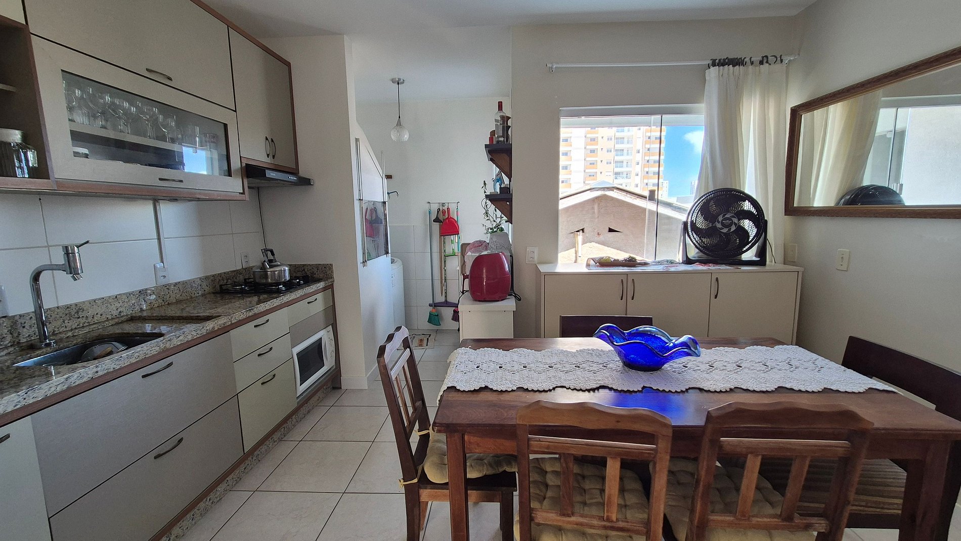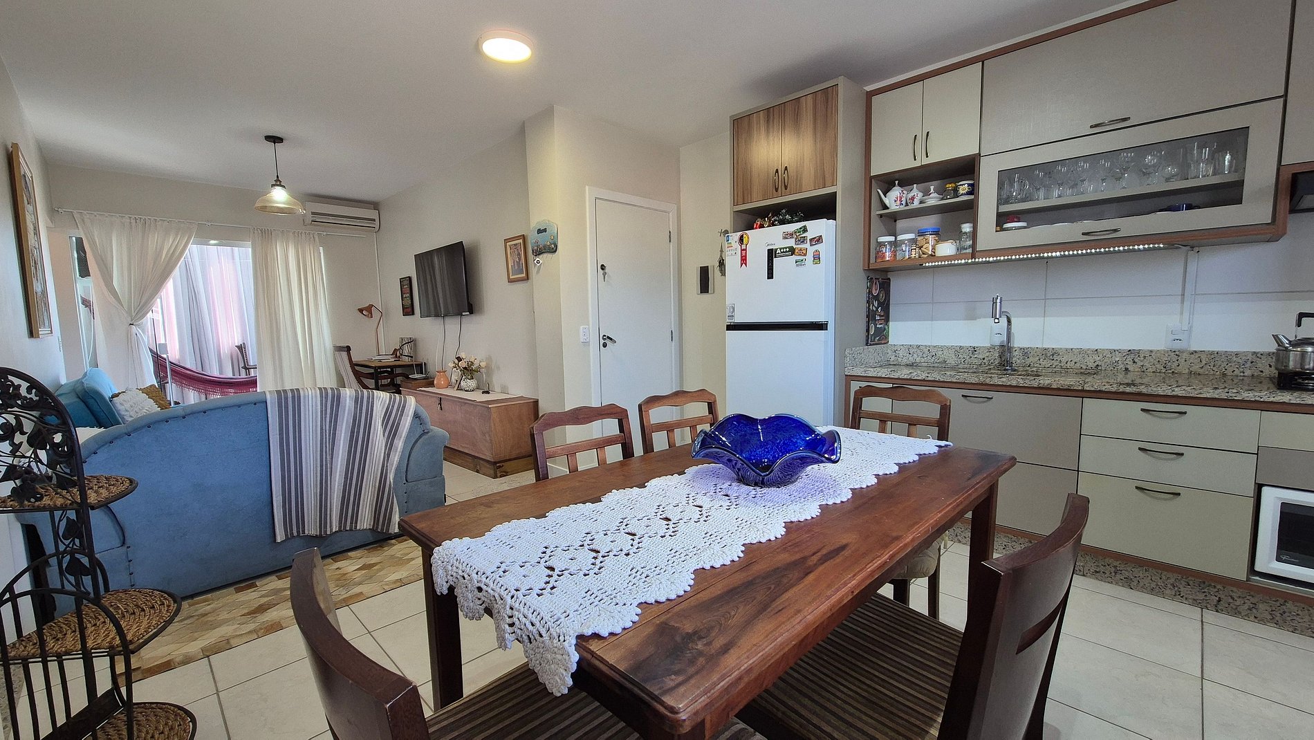 - Espaço para jantar com mesa e cadeiras;