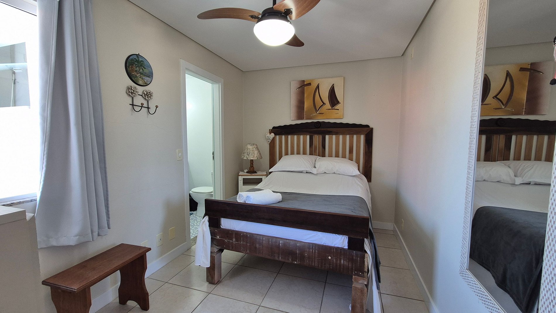 - 1 Suíte com Cama de casal, armário e ventilador de teto;