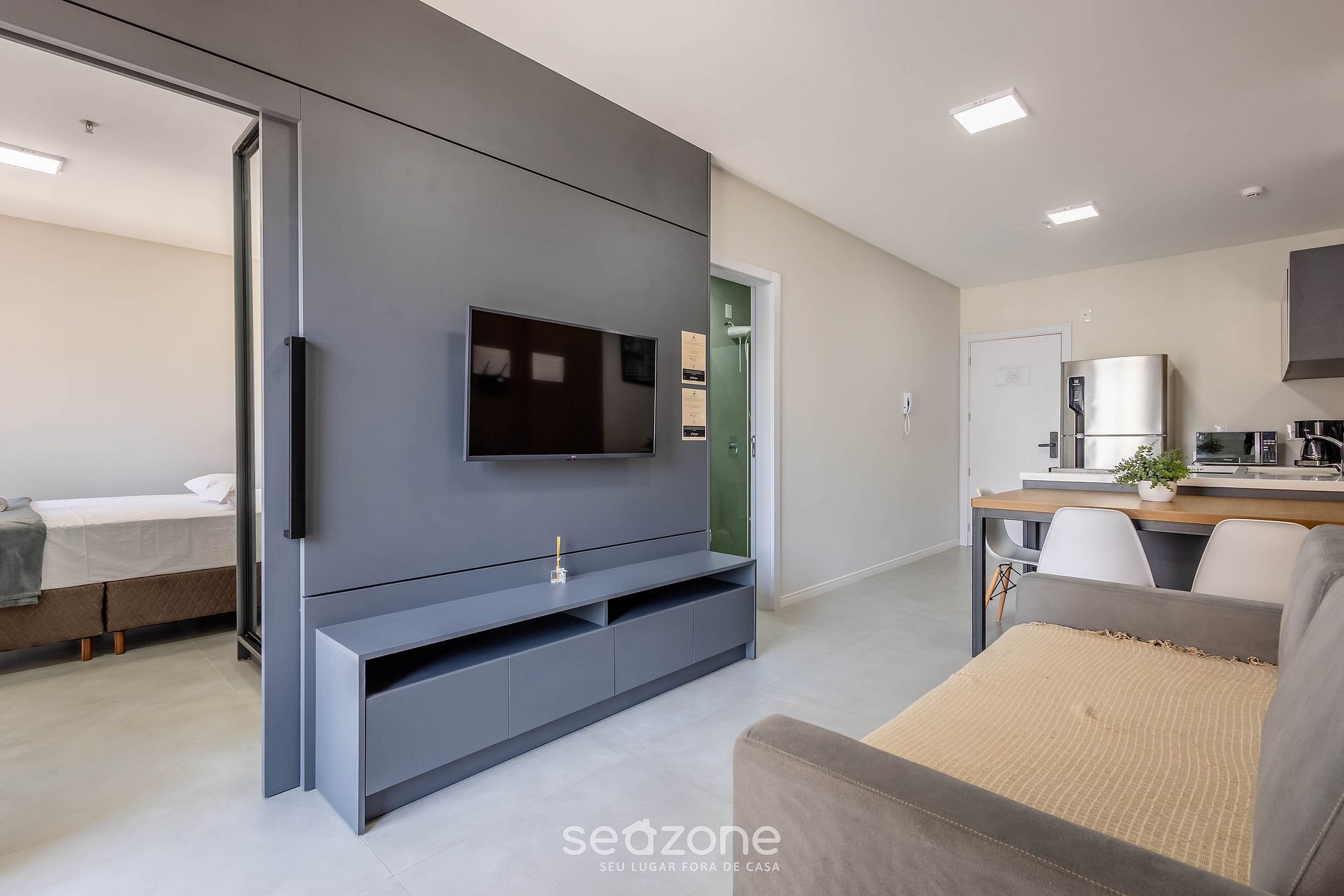 - Sala com sofá-cama de casal, Smart TV e ar-condicionado;