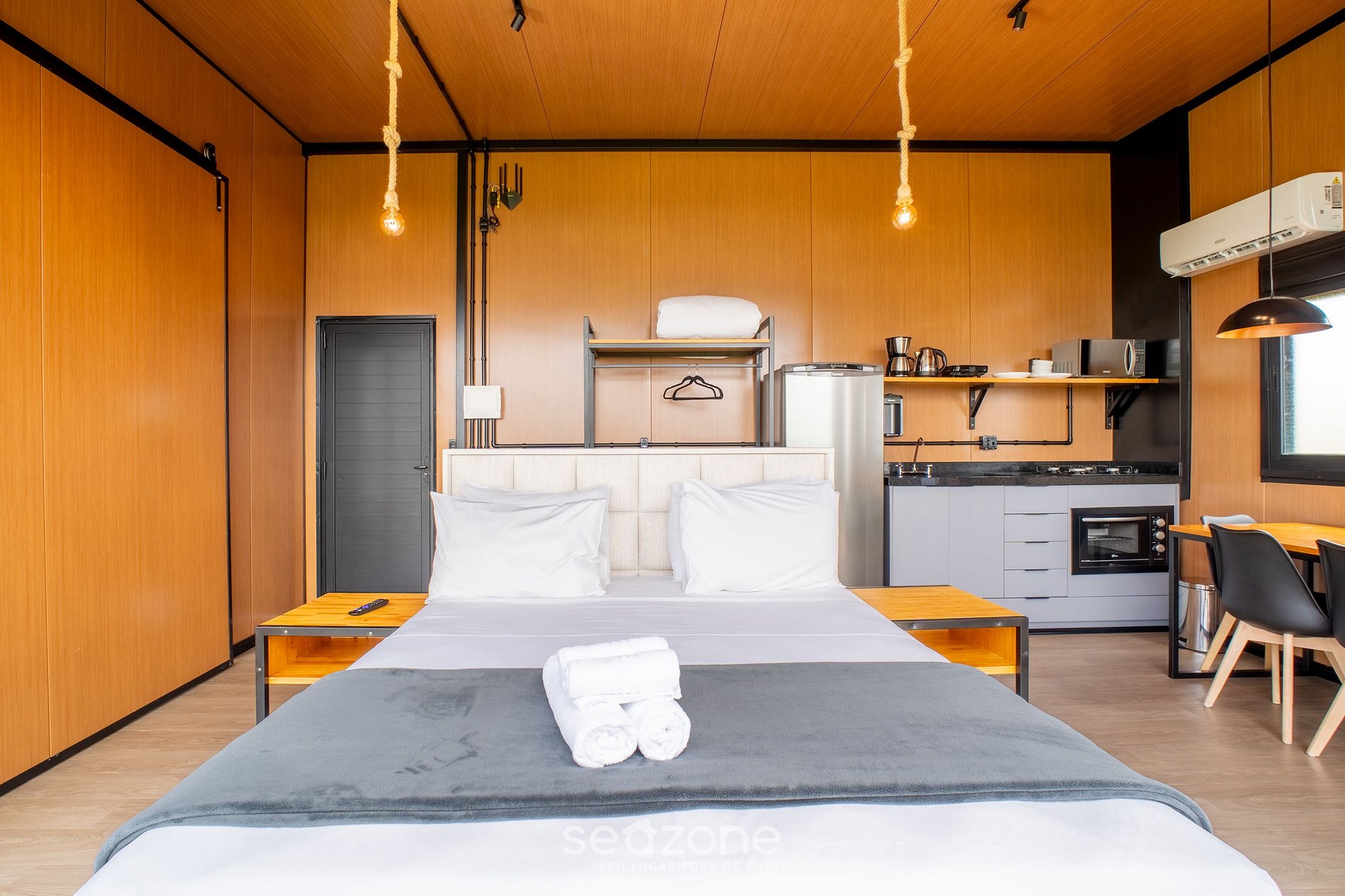 - Roupas de cama e banho de qualidade hoteleira (roupas de cama e toalhas extras são cobrados pela Seazone);