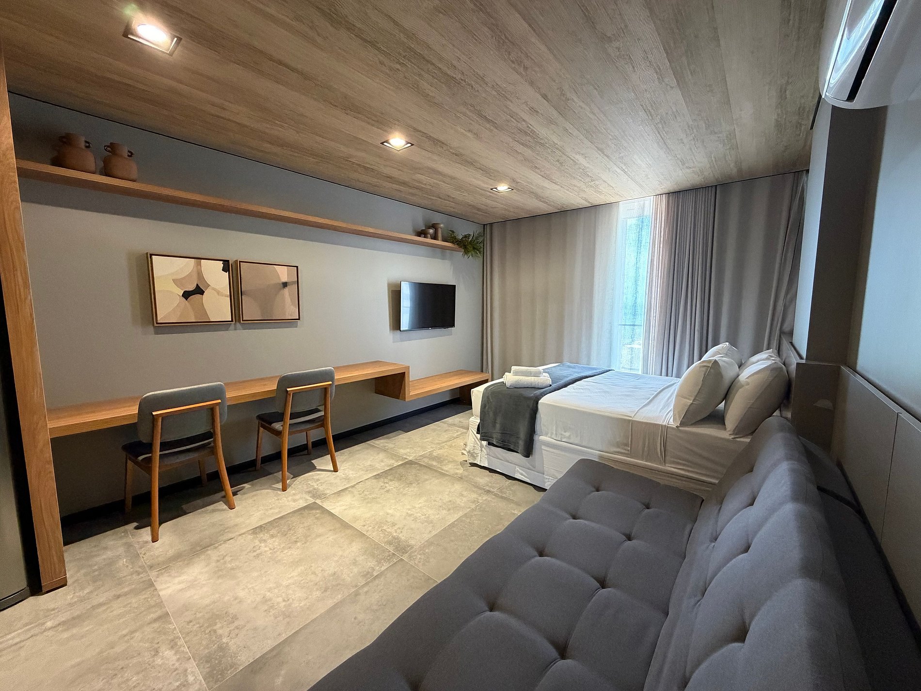 Studio moderno e elegante no bairro da Pajuçara, com cama queen, sofá-cama, Smart TV, ar-condicionado e cozinha completa. A varanda com vista mar lateral valoriza a estadia. O prédio oferece piscina no rooftop com vista panorâmica, academia e áreas de lazer. Localização estratégica, próxima à Orla, feirinha de artesanato, restaurantes e embarque das piscinas naturais.