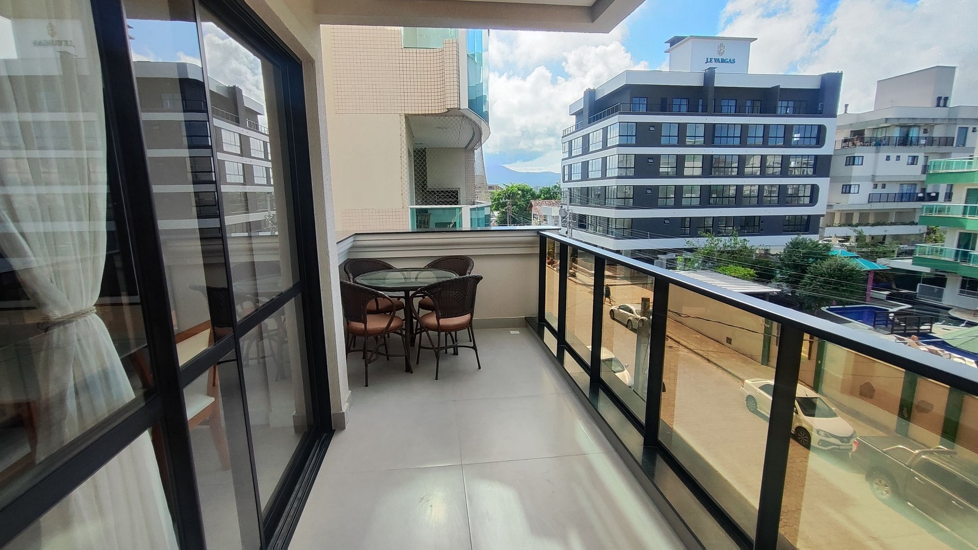 Apto planejado para quem valoriza conforto e boa estrutura. Dispõe de duas suítes climatizadas, quarto com duas camas de solteiro, sala equipada, cozinha completa e espaço para jantar. A varanda com churrasqueira e móveis externos amplia a experiência. Conta com máquina de lavar, enxoval hoteleiro e vaga de garagem coberta. A cerca de 500m da praia, restaurantes e mercados.