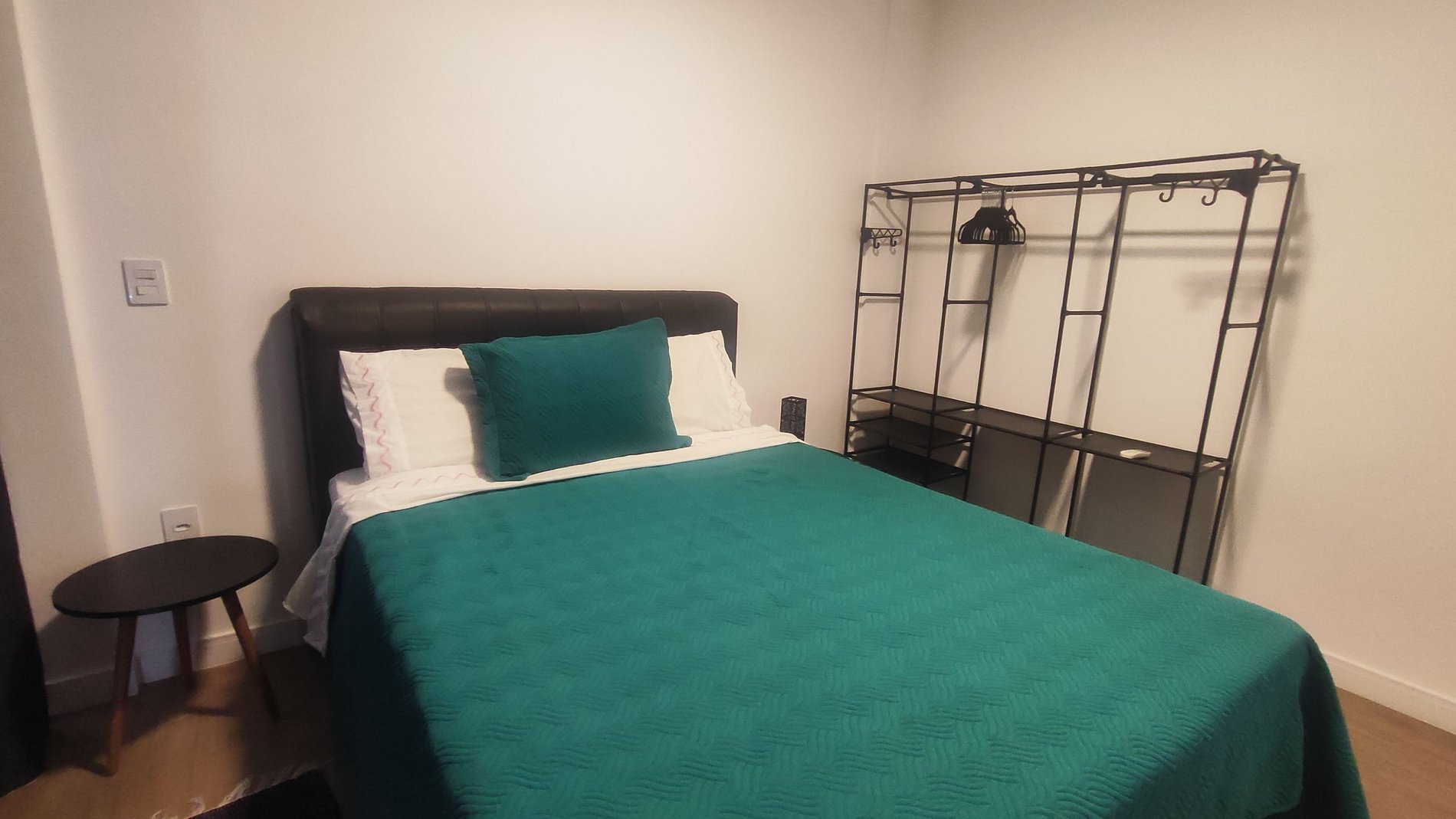 - 1 Suíte com cama queen, arara para roupas e ar-condicionado;