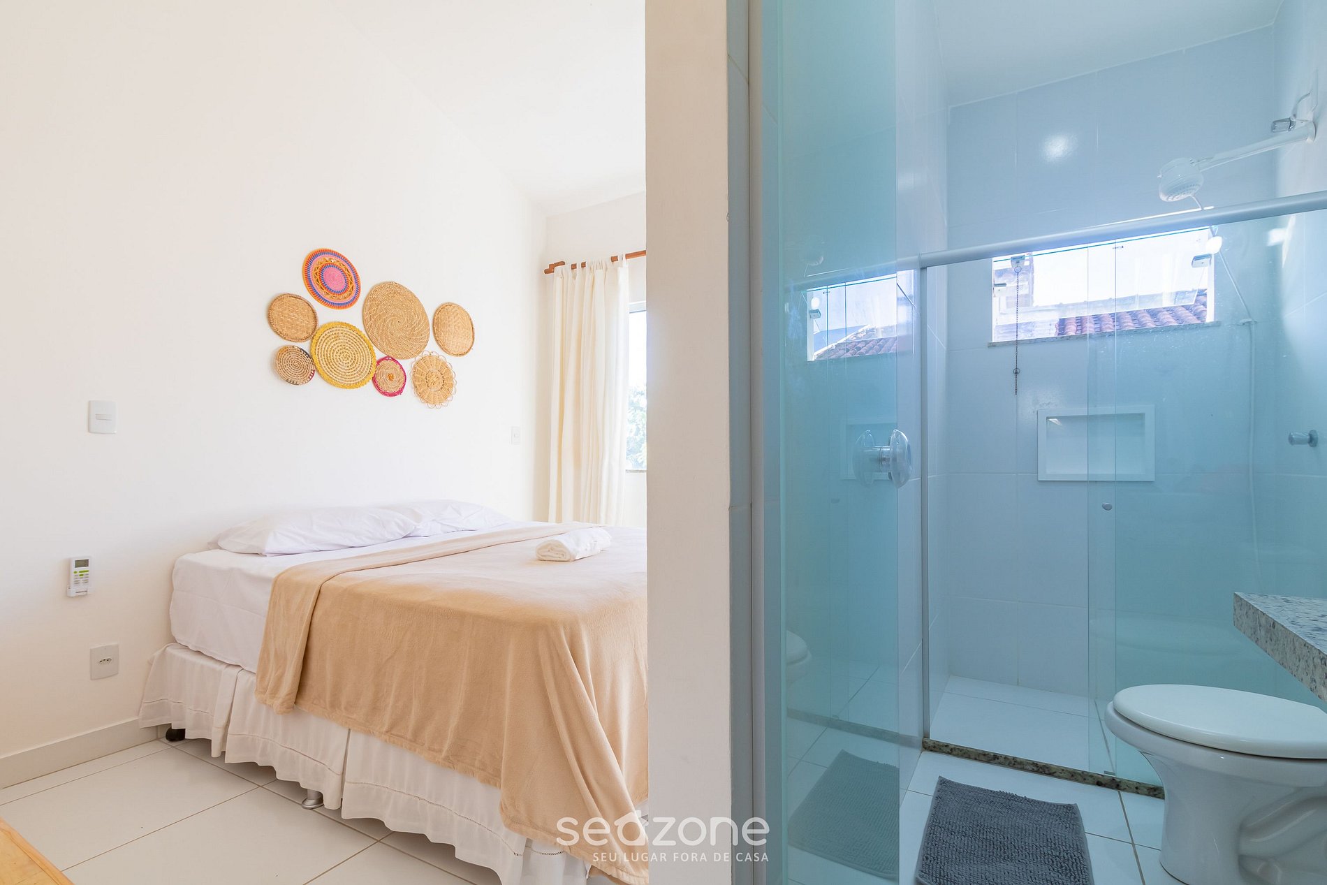 - 1 Suíte com 1 cama de casal queen size, armário e ar-condicionado;