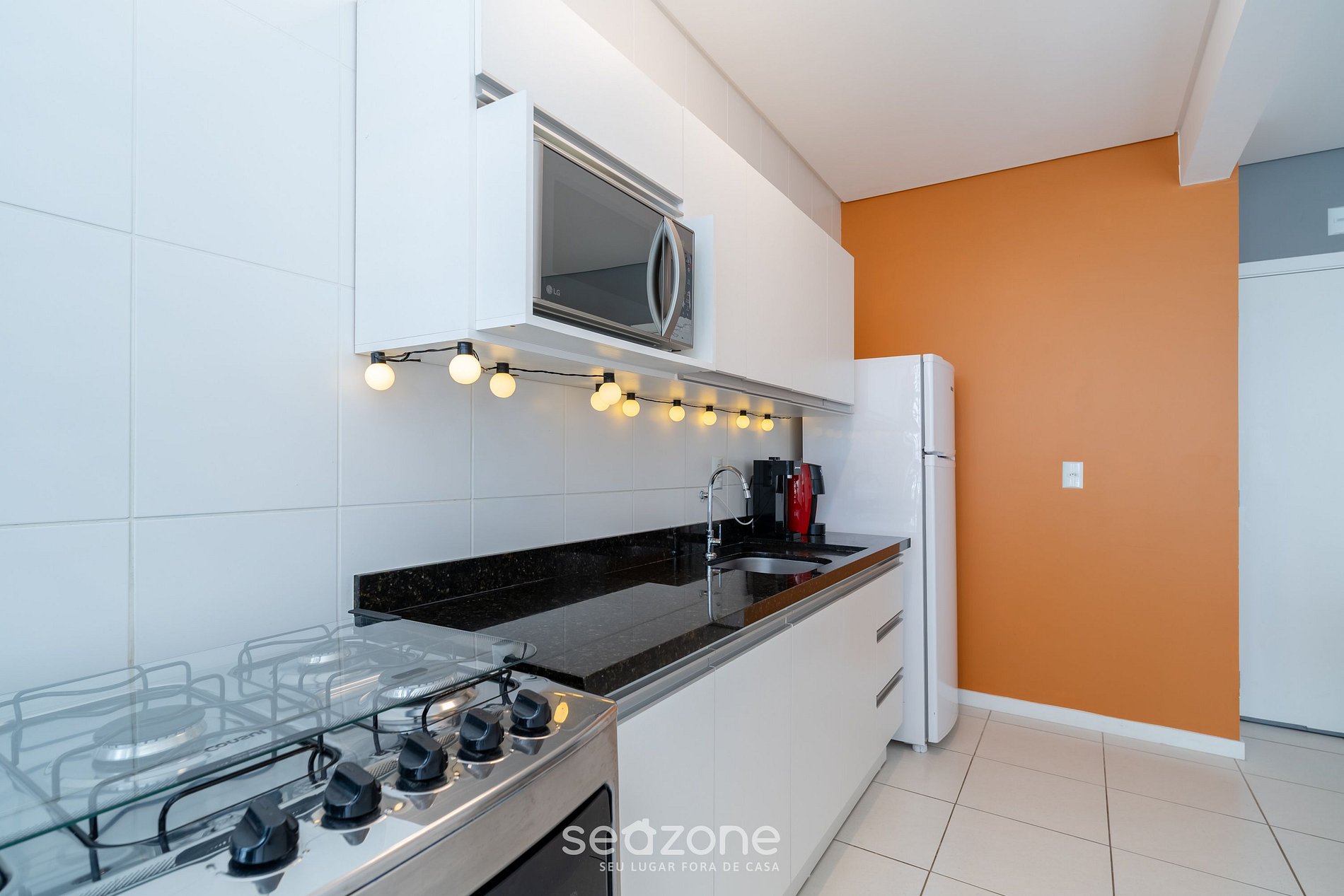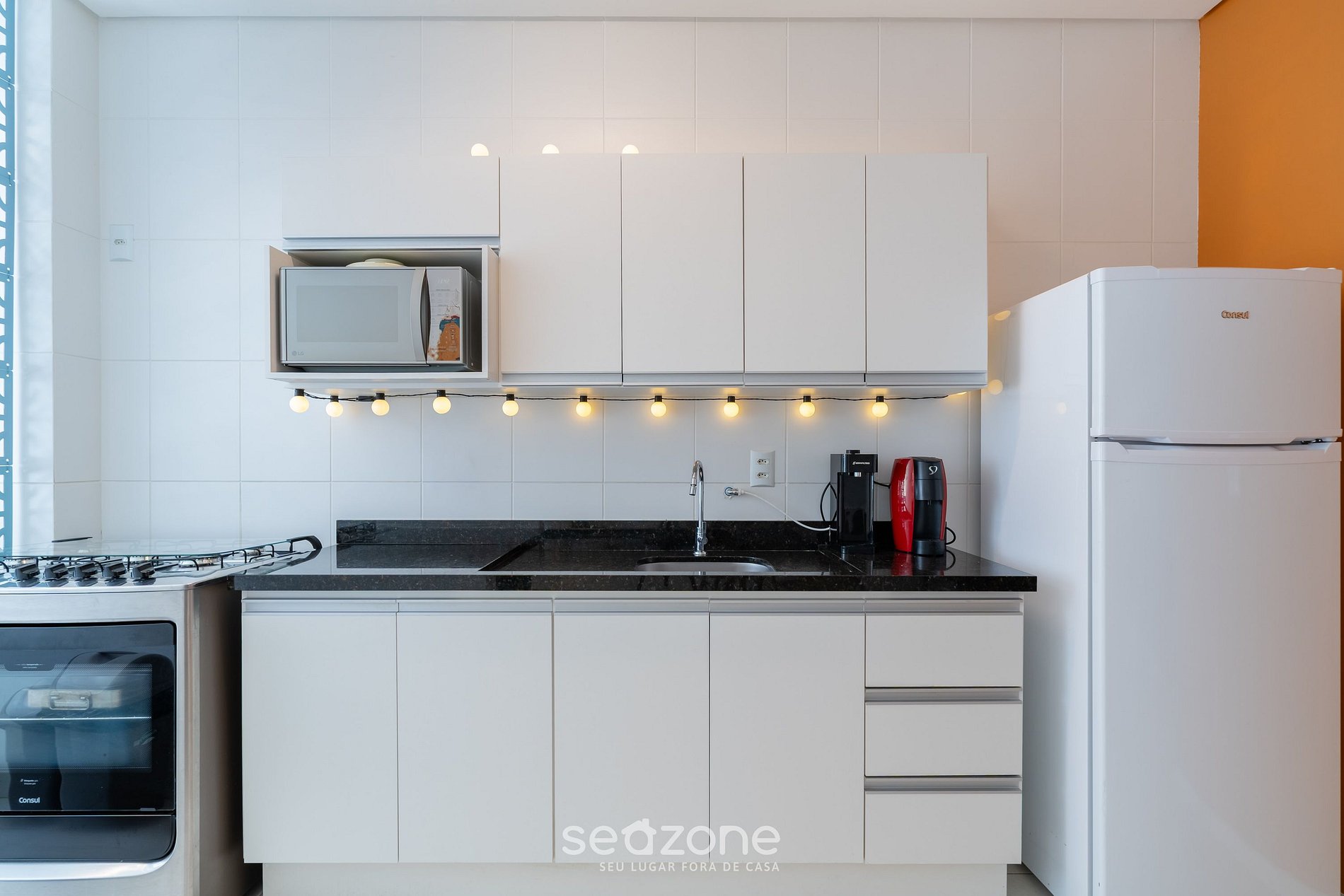- Cozinha completa com geladeira, fogão e forno a gás, micro-ondas, sanduicheira, Kit café (suporte para filtro, garrafa térmica), chaleira elétrica, liquidificador, taças de vinho, panelas, louças e utensílios;