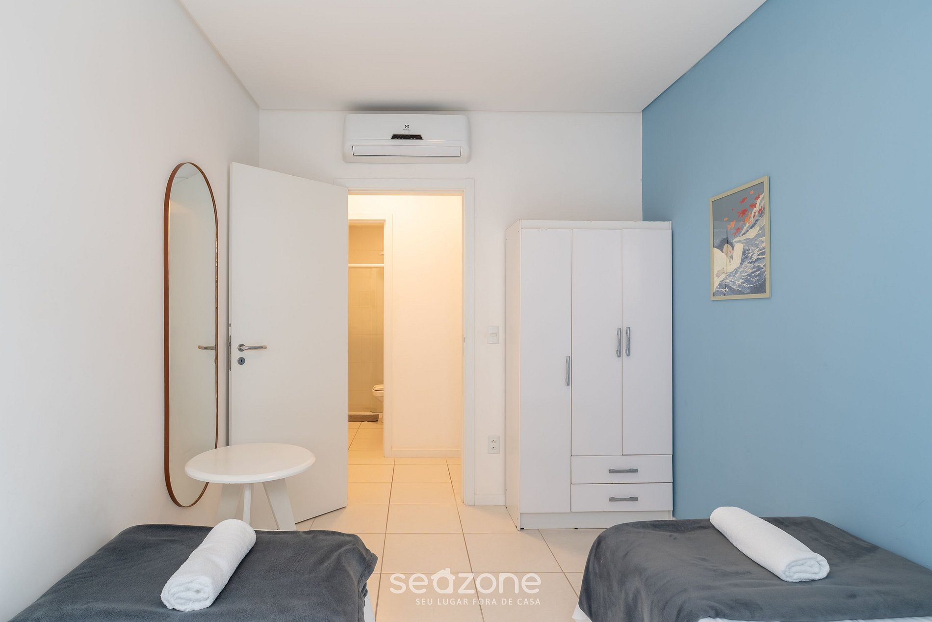 - 1 Quarto com 2 camas de solteiro, armário e ar-condicionado;
