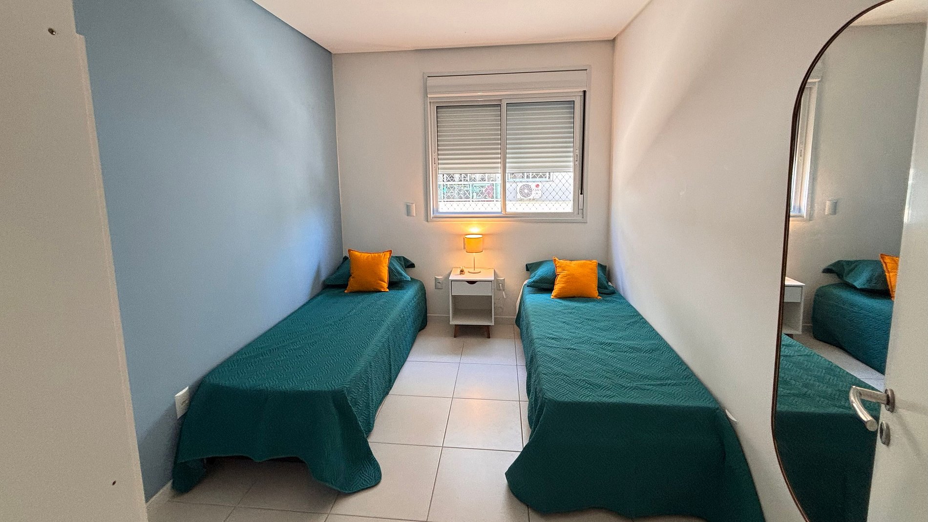 - 1 Quarto com 2 camas de solteiro, armário e ar-condicionado;