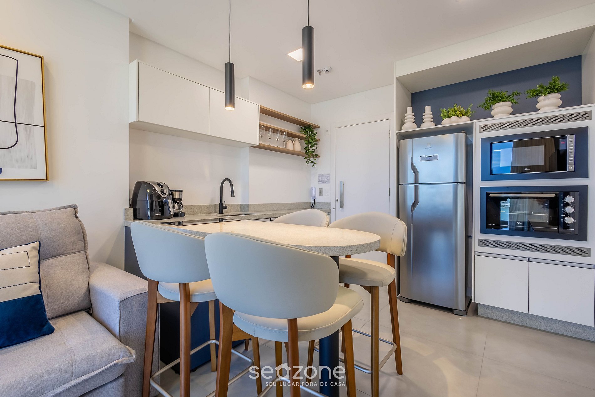 - Espaço para jantar com bancada e 4 cadeiras;