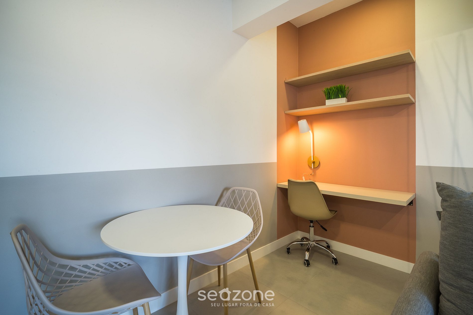 - Espaço para jantar com mesa e cadeiras;