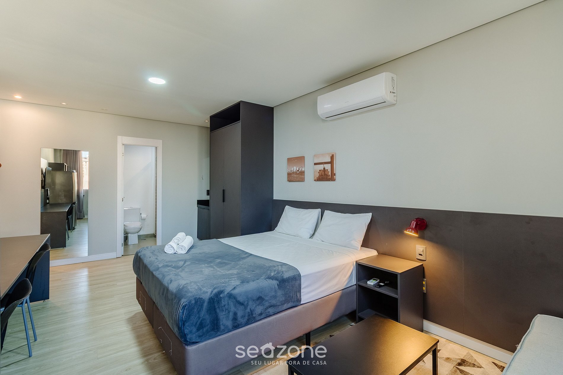 Nossos studios são a escolha perfeita para quem deseja vivenciar uma estadia confortável e funcional, proporcionando uma experiência única em Porto Alegre.