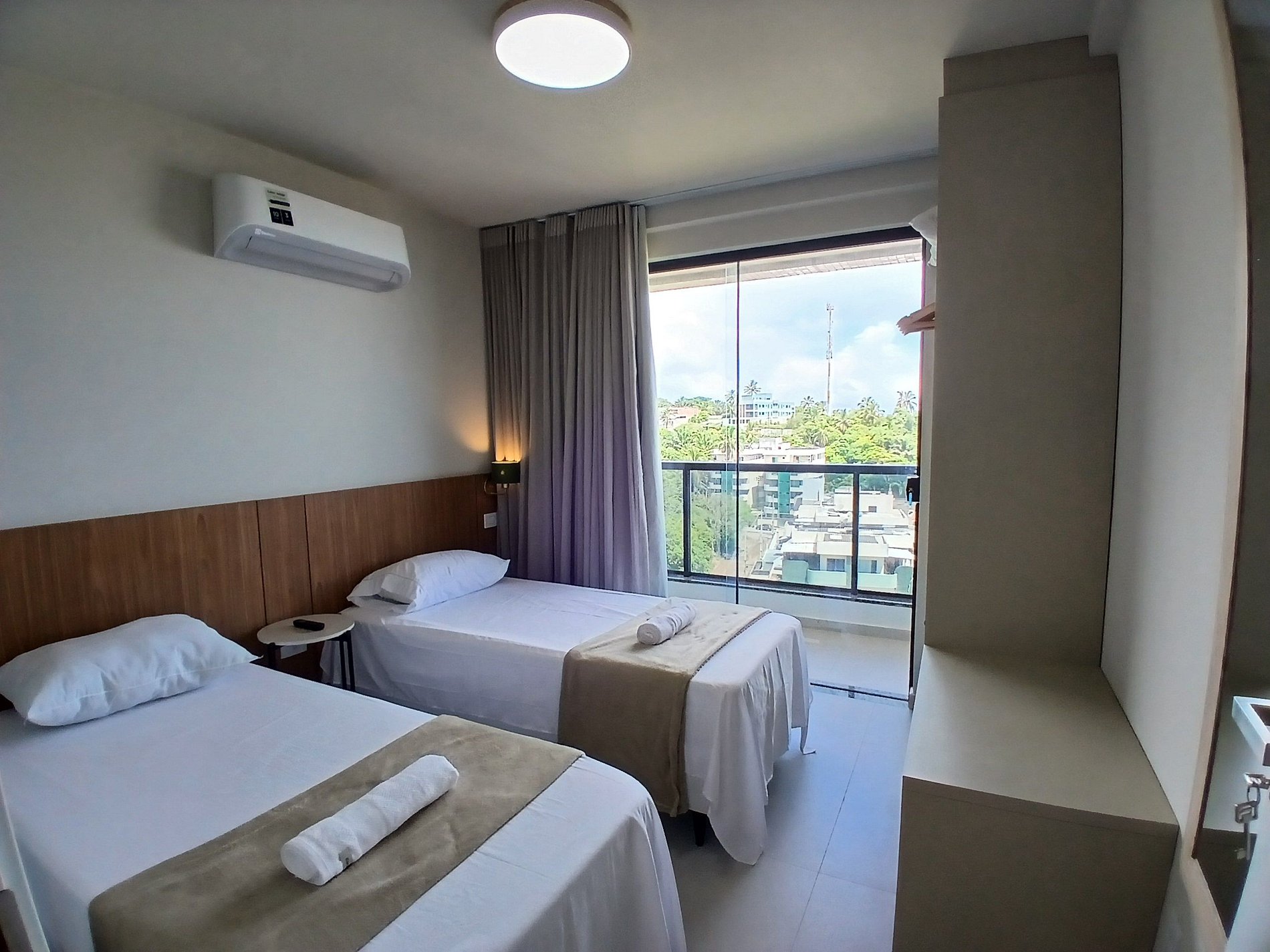 - 1 Quarto com 2 camas de solteiro, armário e ar-condicionado;