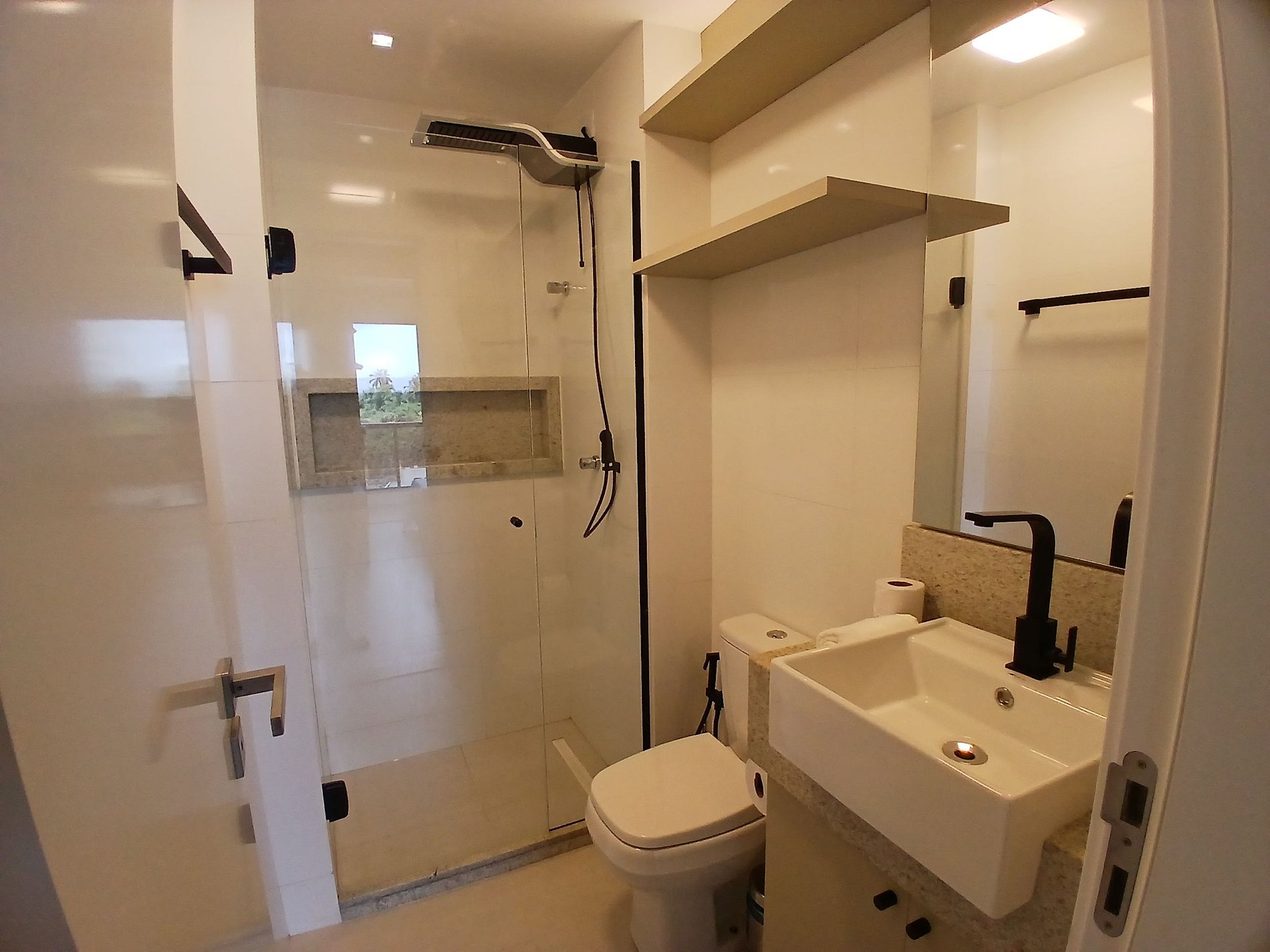 - 1 Suíte com cama queen, espaço para notebook, armário e ar-condicionado;
