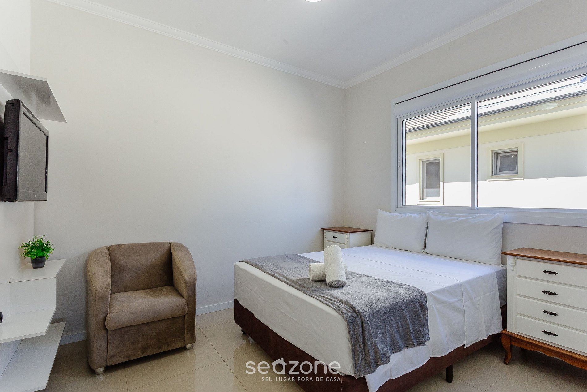 - Roupas de cama e banho de qualidade hoteleira (roupas de cama e toalhas extras são cobrados pela Seazone);