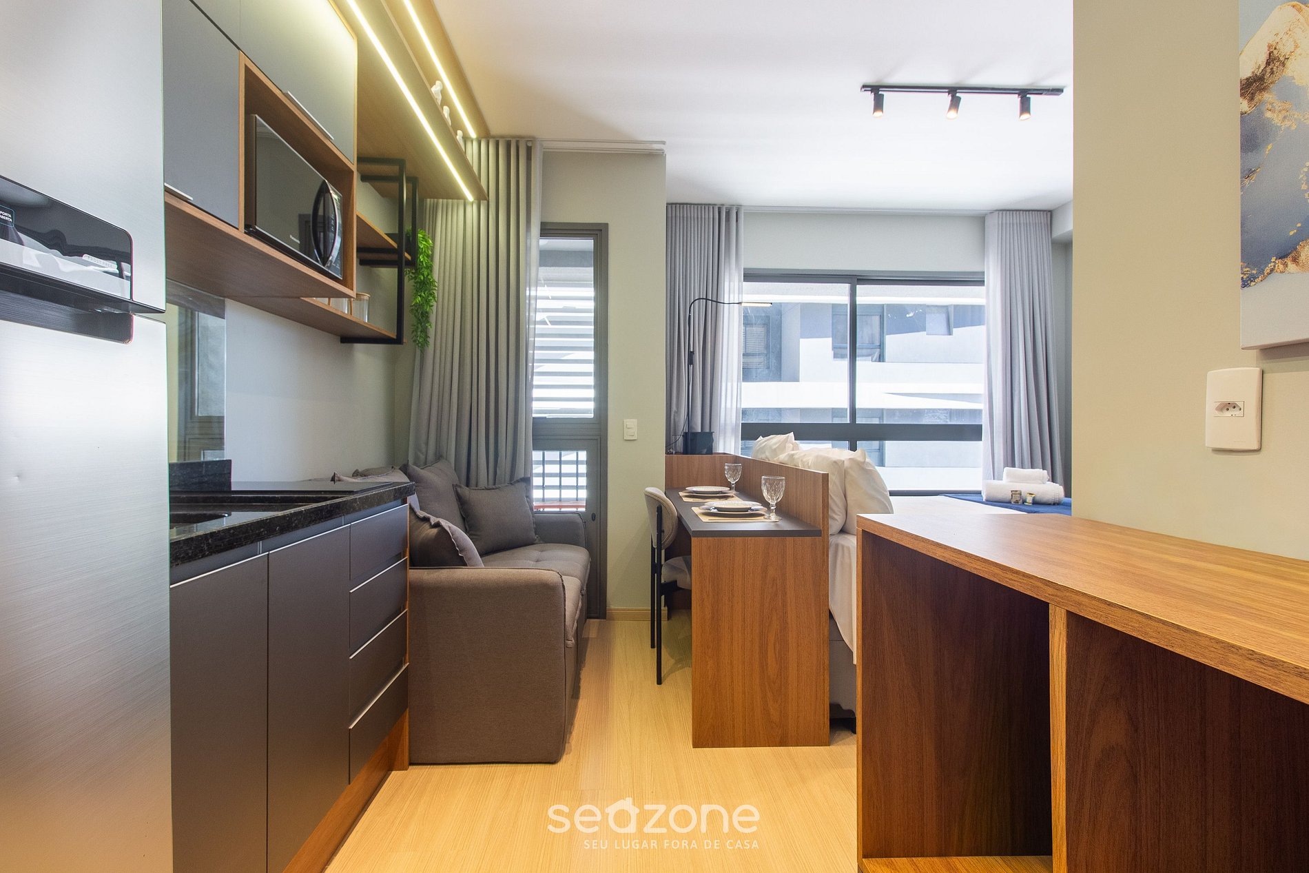 Viva o melhor de Pinheiros: estúdio moderno com lazer completo! Desfrute da conveniência de se hospedar num dos bairros mais desejados de SP, próximo a pontos famosos como Mocotó Café e Rua dos Pinheiros. Este estúdio oferece o descanso merecido em uma cama queen, com o frescor do ar-condicionado e total autonomia em sua cozinha privativa. Aproveite a piscina e a academia do condomínio. Reserve agora e garanta sua estadia no coração pulsante de Pinheiros!