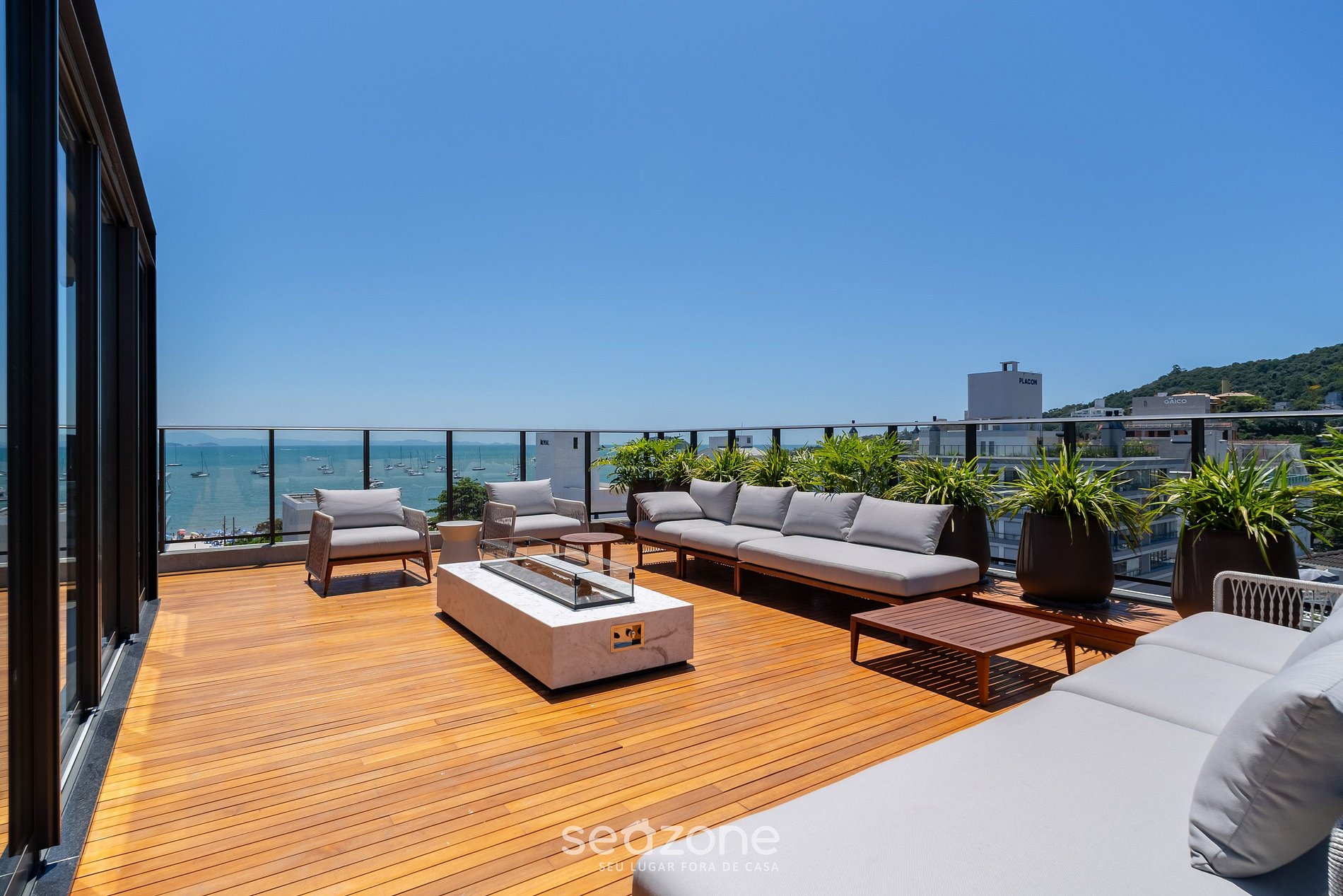 - Roupas de cama/banho e limpeza extras são solicitadas e pagas à parte, direto com a Seazone;