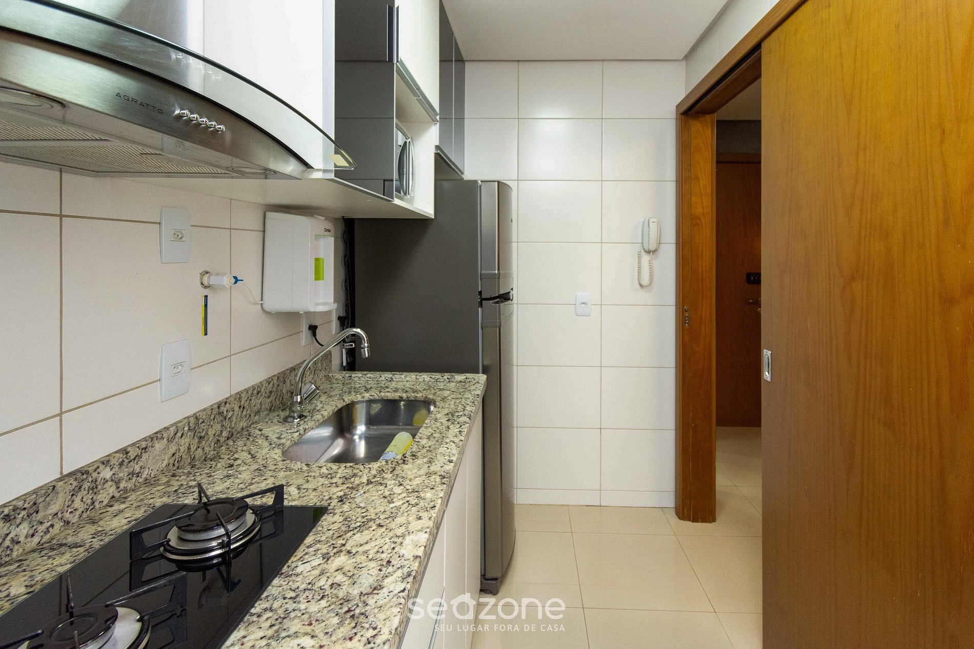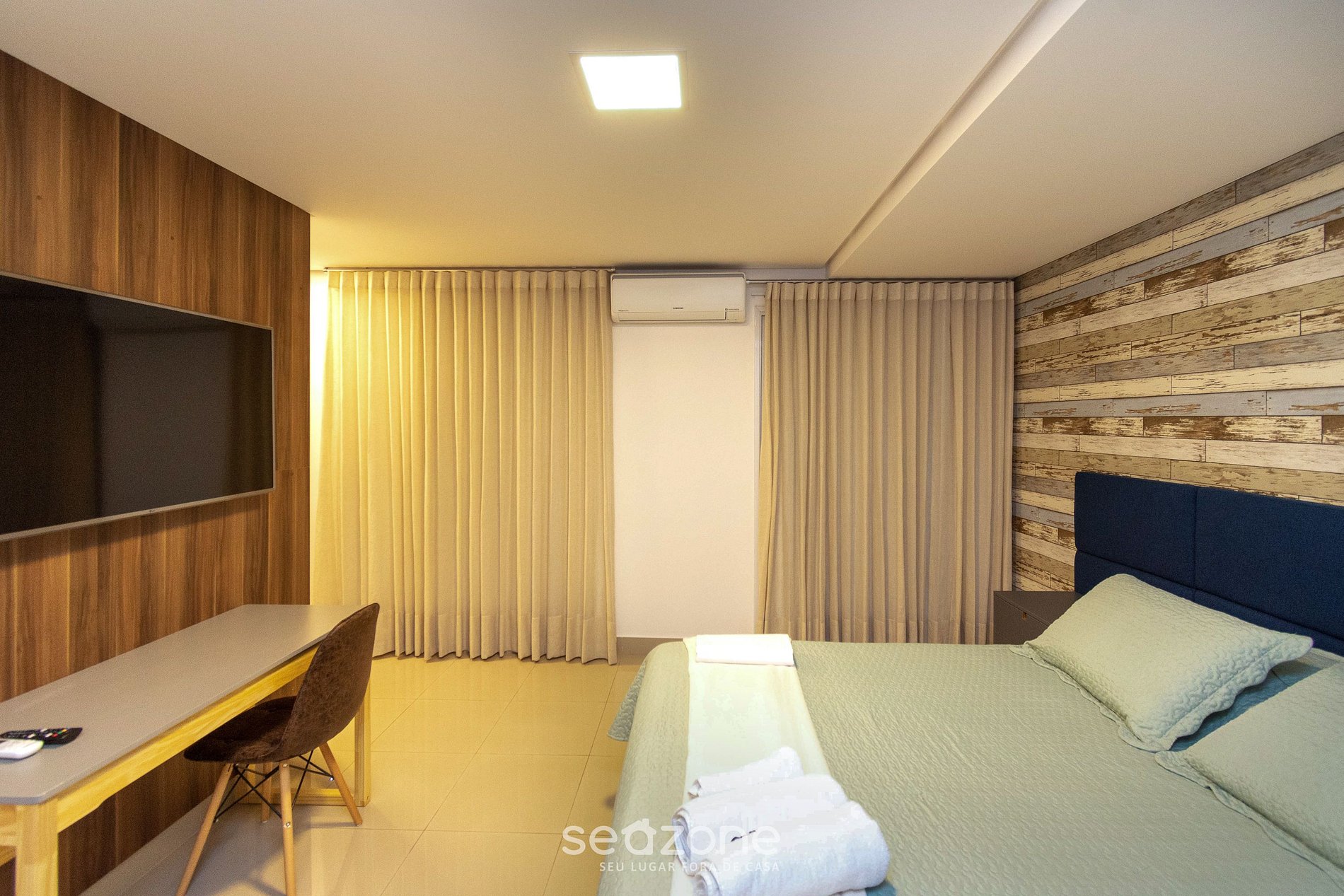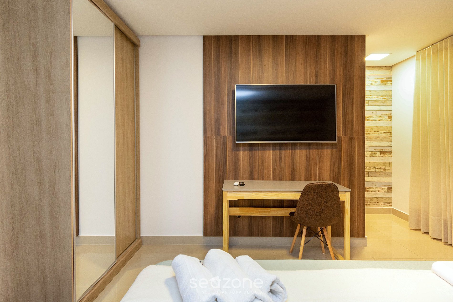 Tenha uma estadia completa neste flat moderno em Goiânia, Setor Bueno. Cozinha equipada, Smart TV, Wi-Fi de alta velocidade e check-in sem chave e ar condicionado para você ter o máximo de conforto.