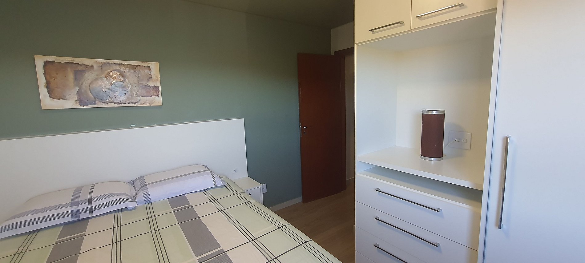 - 1 Quarto com Cama queen size, armário e ar-condicionado;