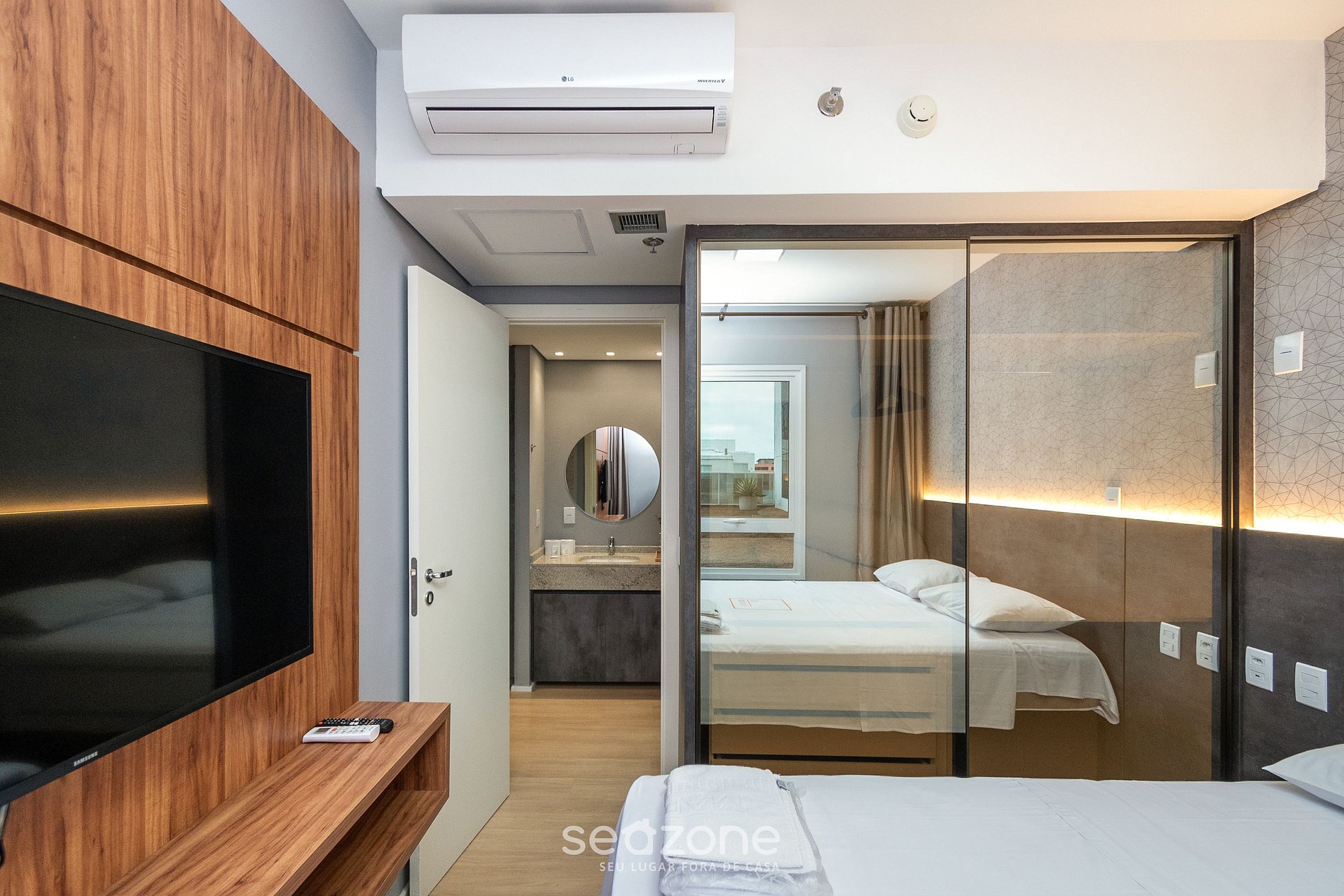 Cozinha equipada, TV smart, Wi-Fi de alta velocidade e check-in sem chave e ar condicionado nos ambientes e para você ter o máximo de conforto.