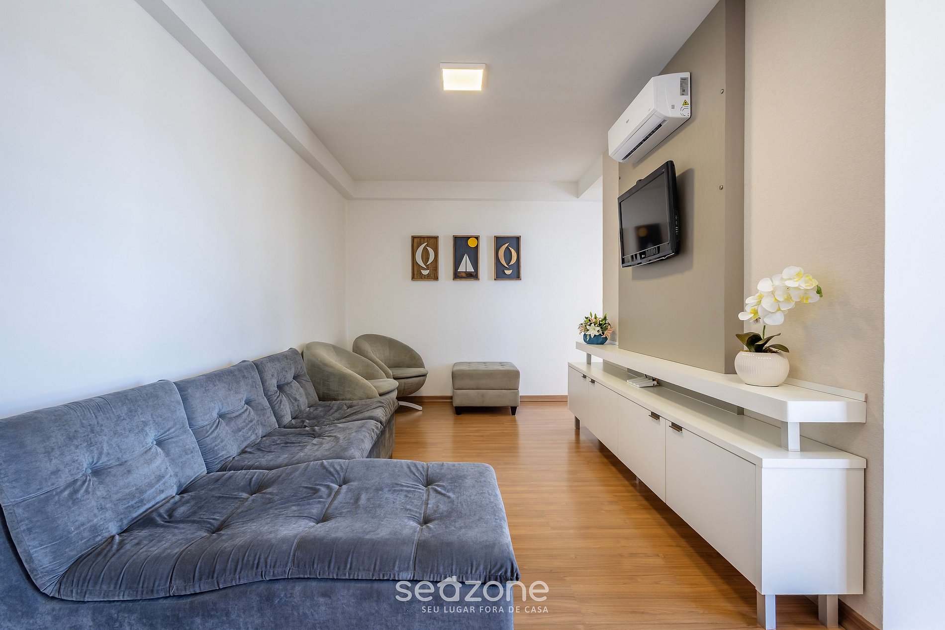 - Sala de estar com Sofá, Smart TV e ar-condicionado;