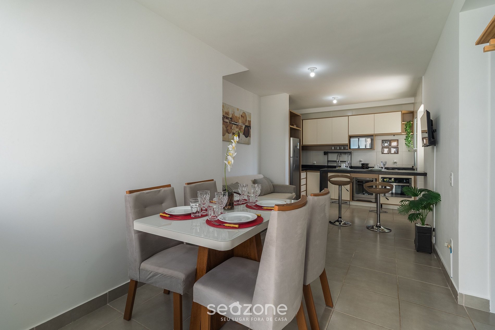 - Espaço para jantar com mesa e cadeiras;