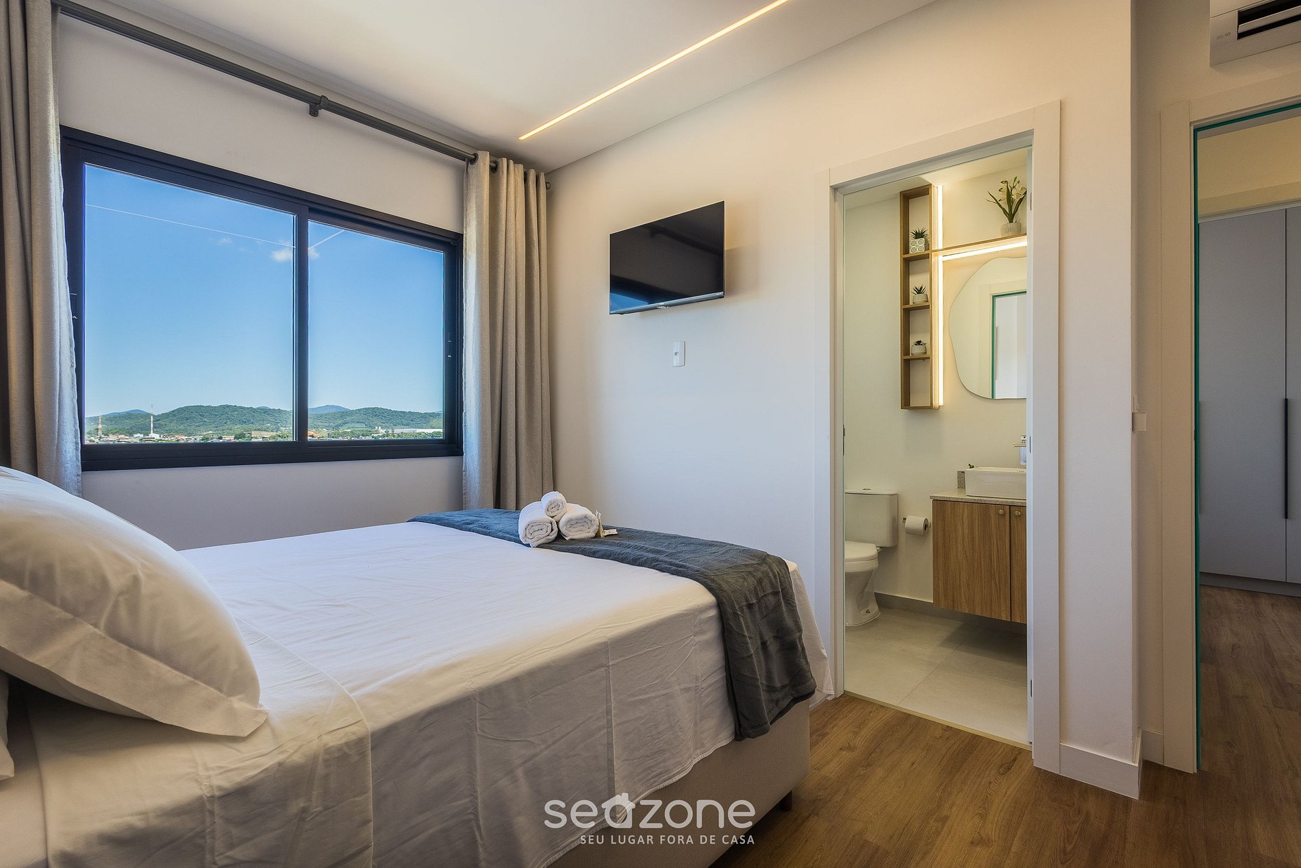- Roupas de cama e banho de qualidade hoteleira (roupas de cama e toalhas extras são cobrados pela Seazone);