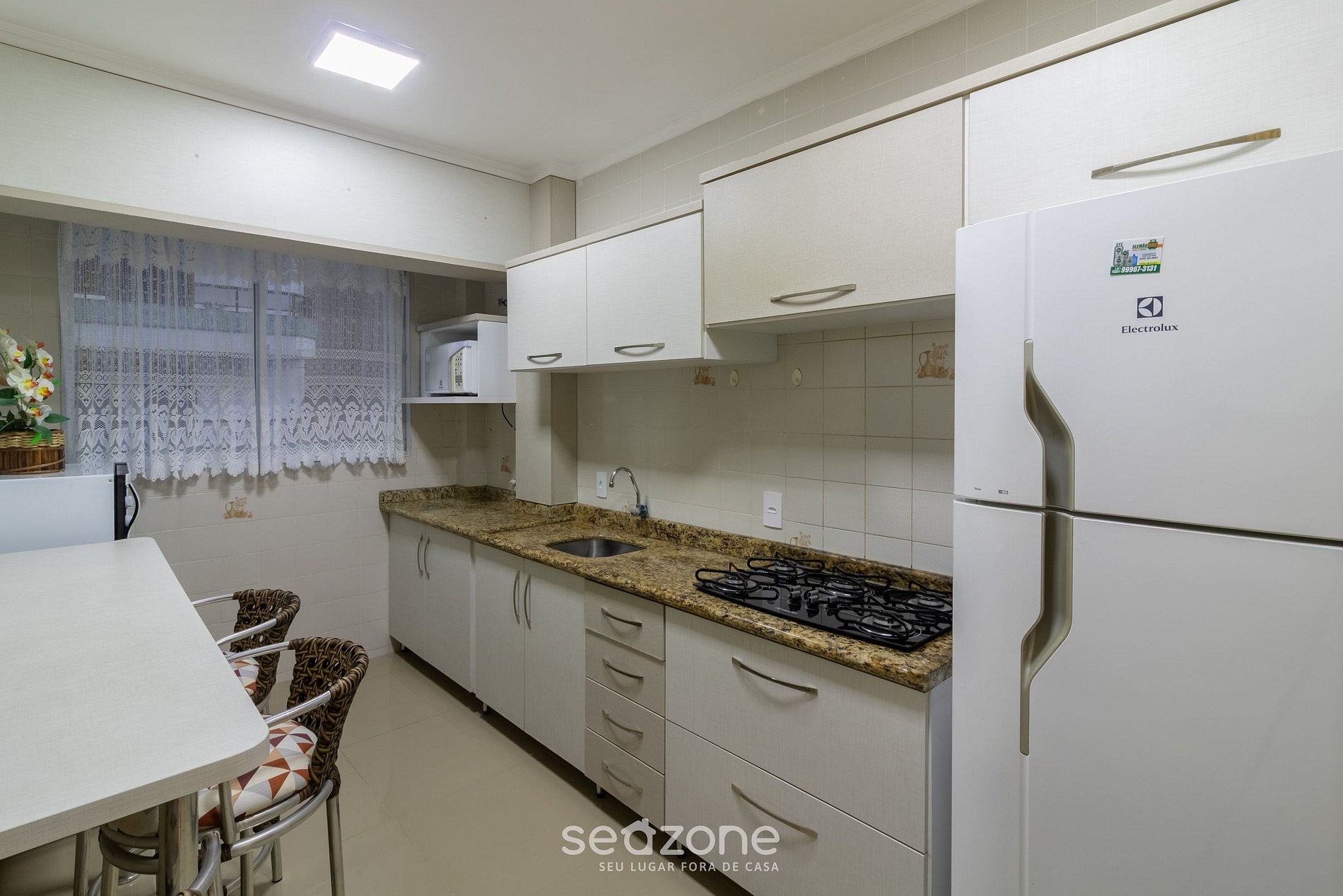- Cozinha completa com geladeira, fogão cooktop a gás, forno elétrico, micro-ondas, sanduicheira, Kit café (suporte para filtro, garrafa térmica), chaleira elétrica, liquidificador, taças de vinho, panelas, louças e utensílios;