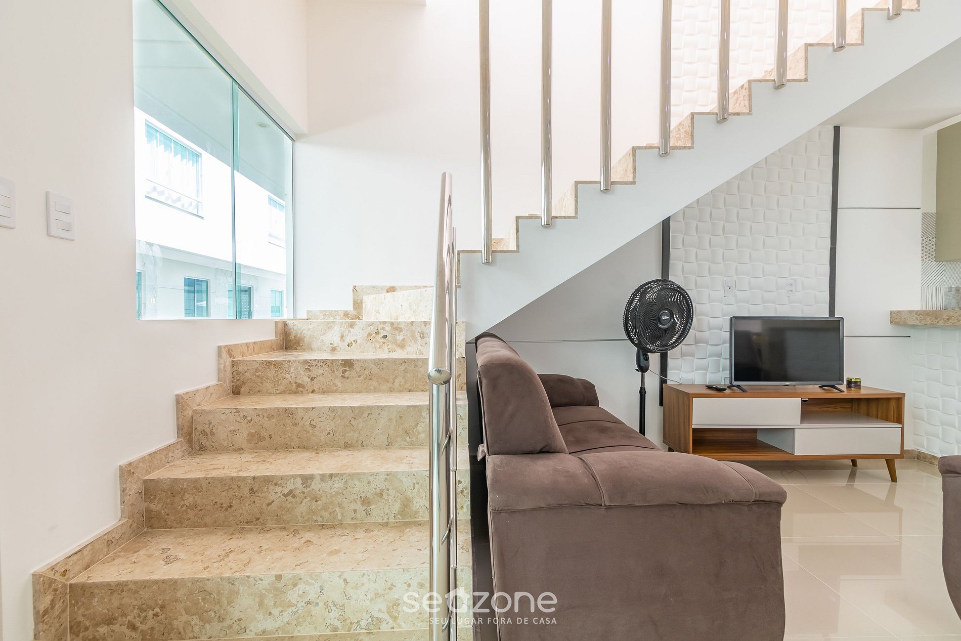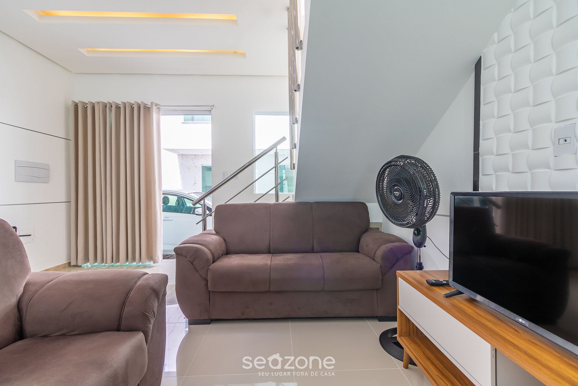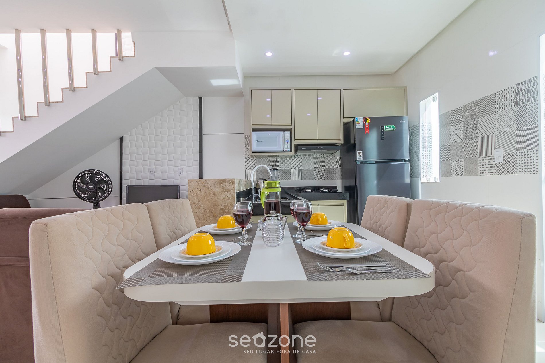 - Roupas de cama/banho e limpeza extras são solicitadas e pagas à parte, direto com a Seazone;