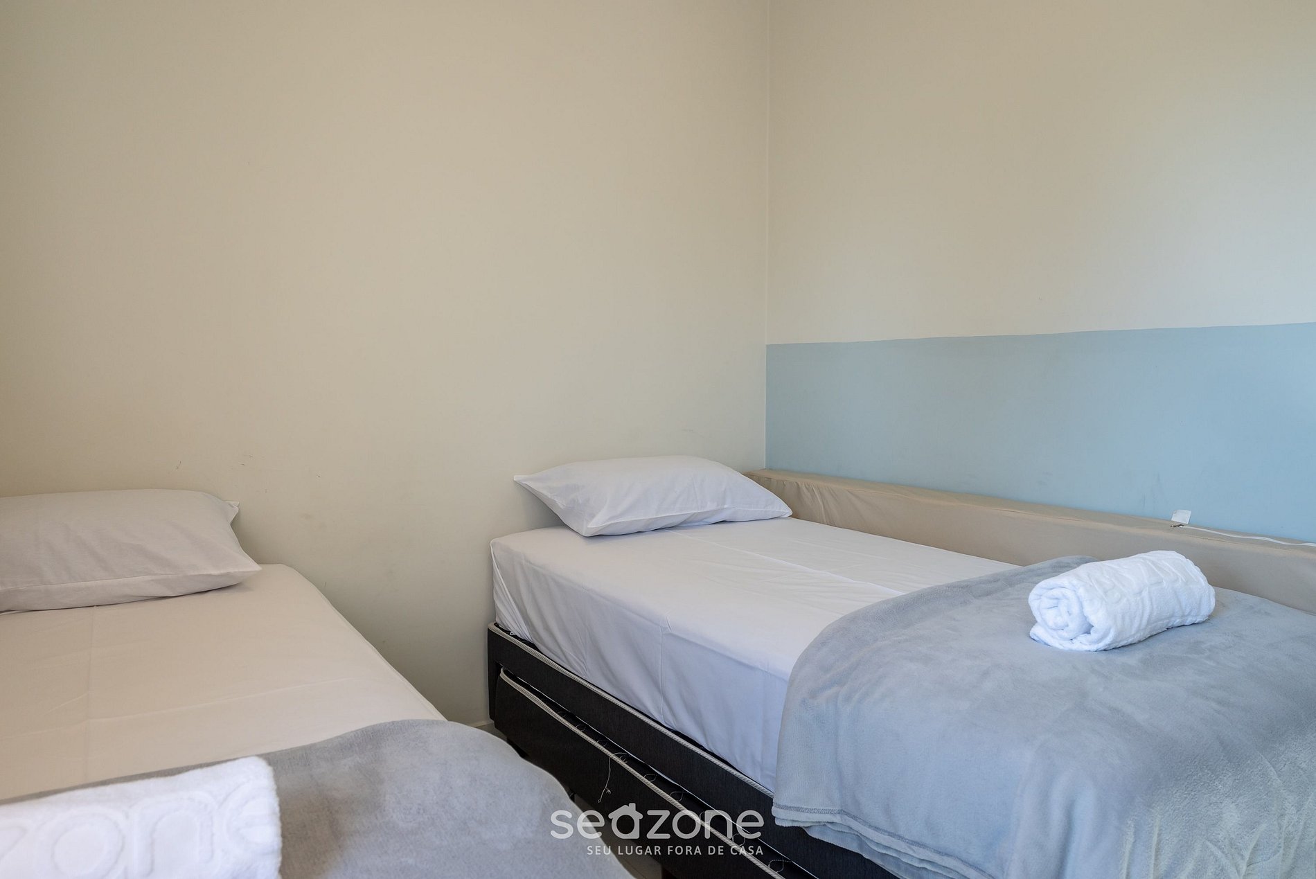 - 1 Quarto com 2 camas de solteiro, 1 cama auxiliar de solteiro, armário e ar-condicionado;