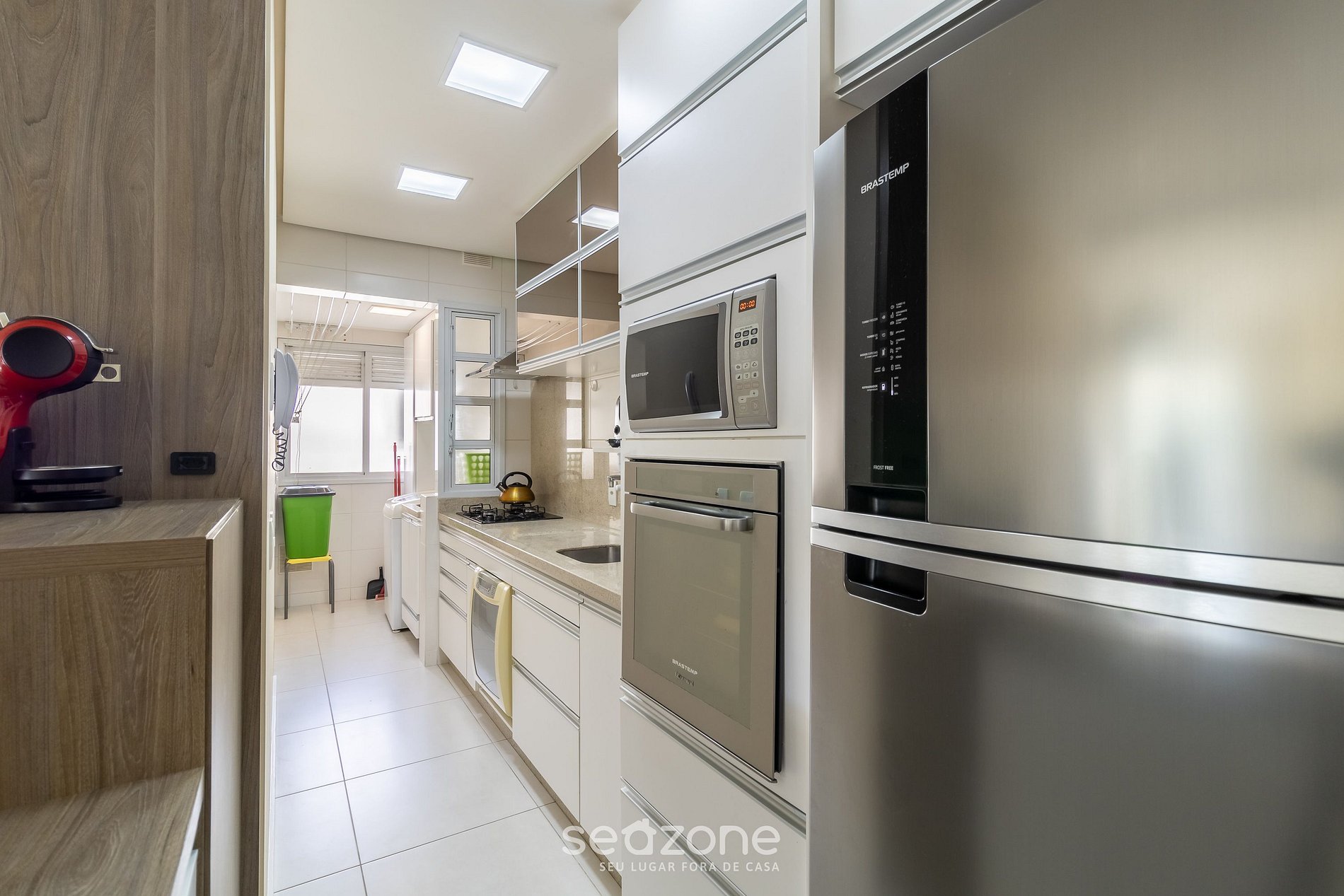 - Cozinha com geladeira, fogão, forno, micro-ondas, sanduicheira, cafeteira, chaleira elétrica , liquidificador, taças de vinho, panelas, louças e utensílios;