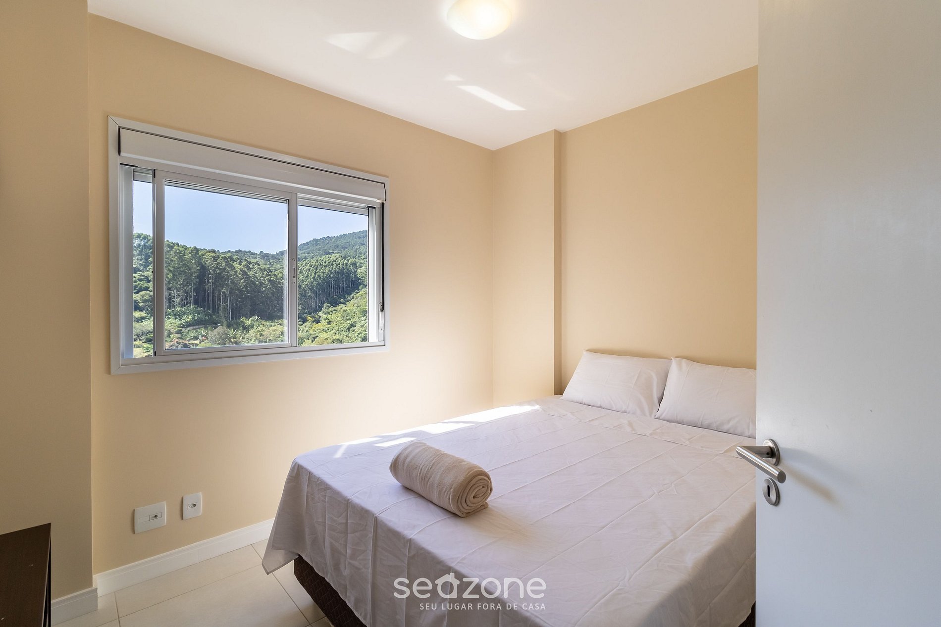 - 1 Quarto com 1 cama de casal, armário e ar-condicionado;