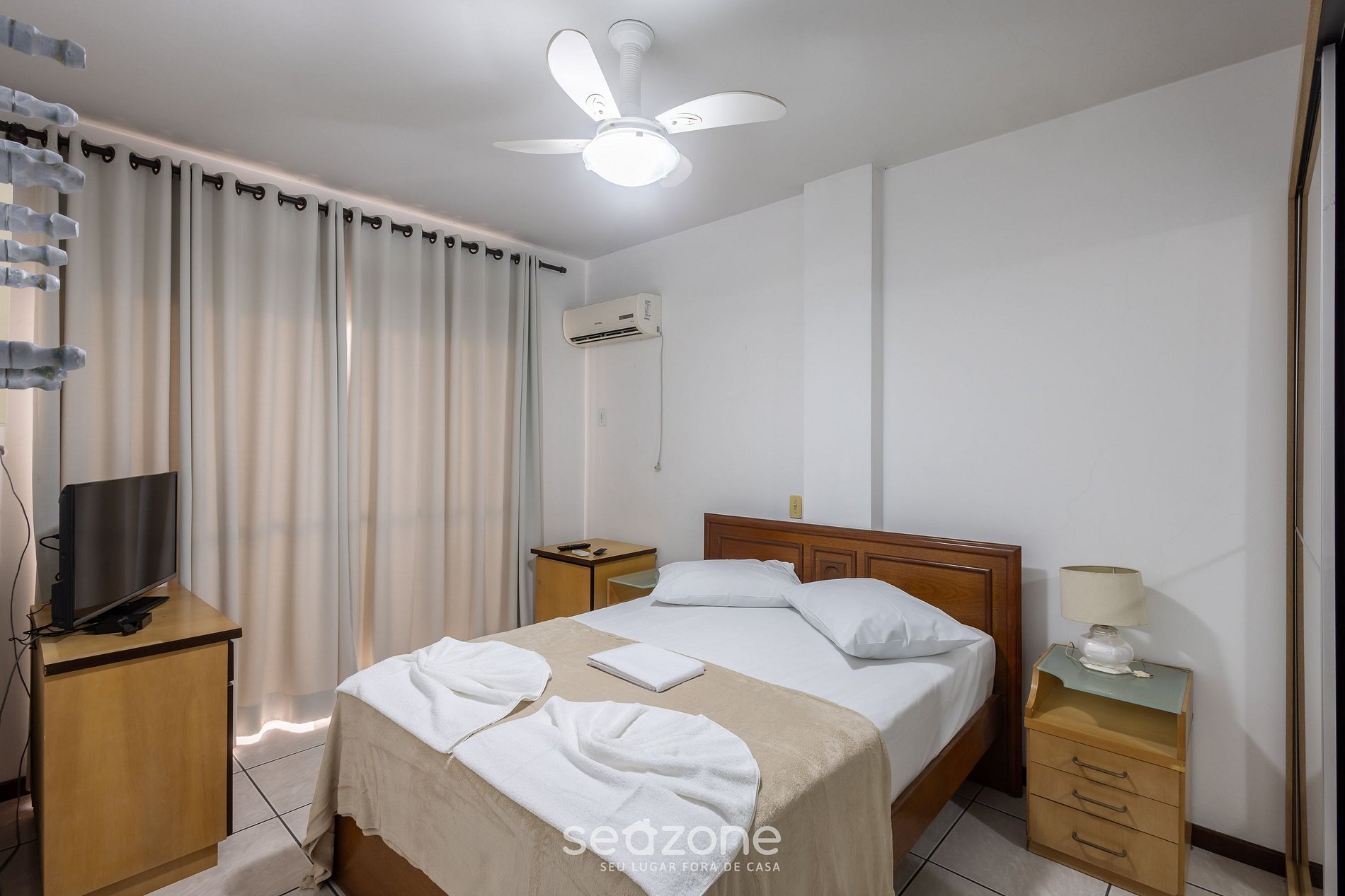 - 1 Suíte com cama de casal, TV, guarda-roupa, armário e ar-condicionado;