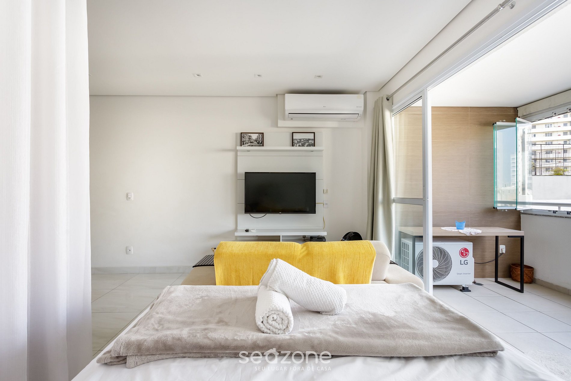 - Roupas de cama e banho de qualidade hoteleira (roupas de cama e toalhas extras são cobrados pela Seazone);